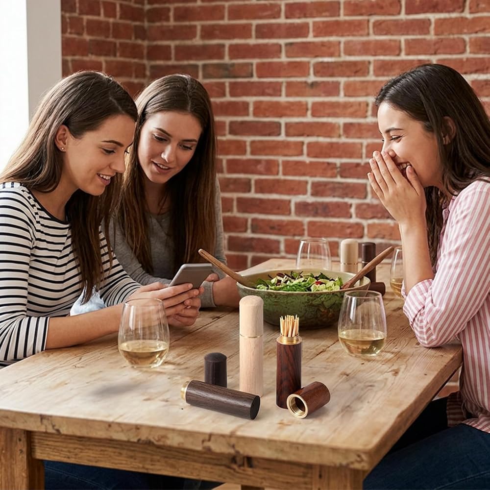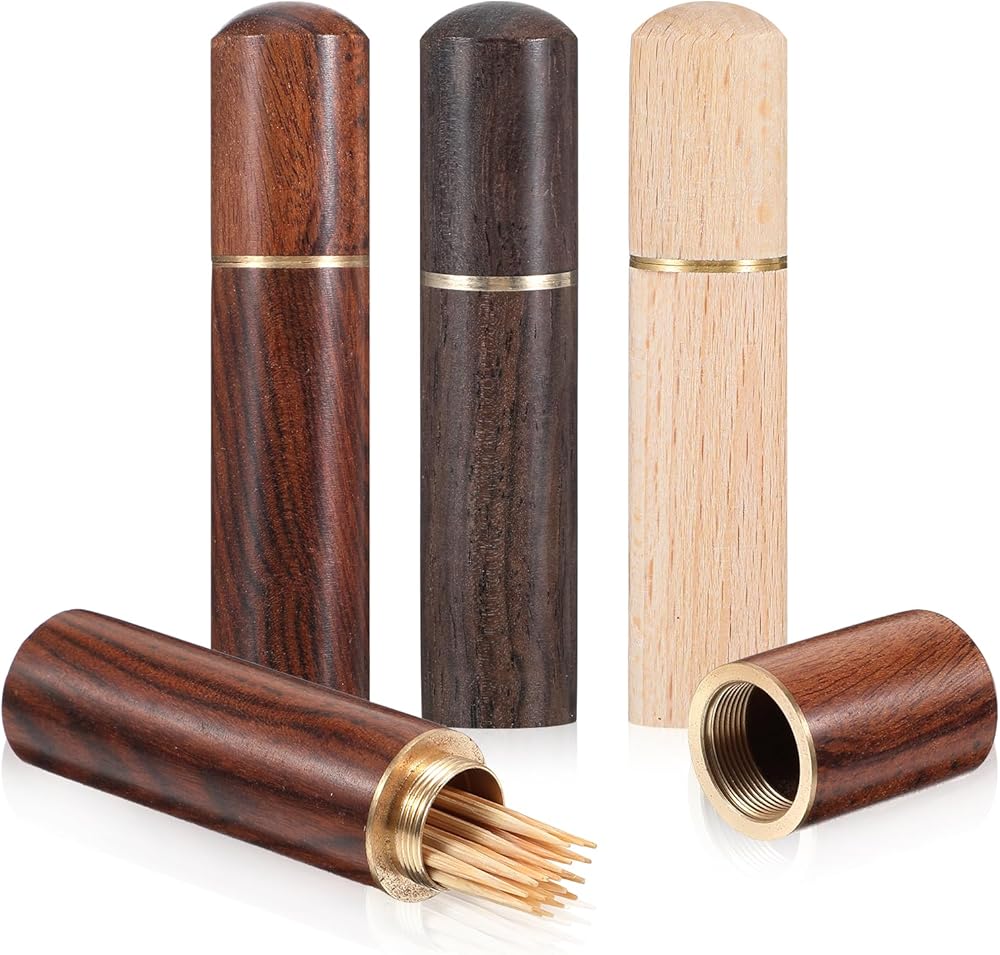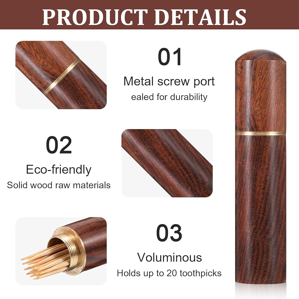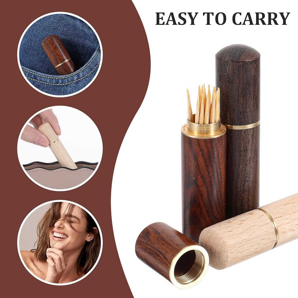 【Compact & Portable】Crafted from quality wood, each toothpick holder measures approximately 3.2 x 0.7 inches, a truly pocket-sized design. Its compact form factor allows it to fit effortlessly into bags, wallets, or pockets.