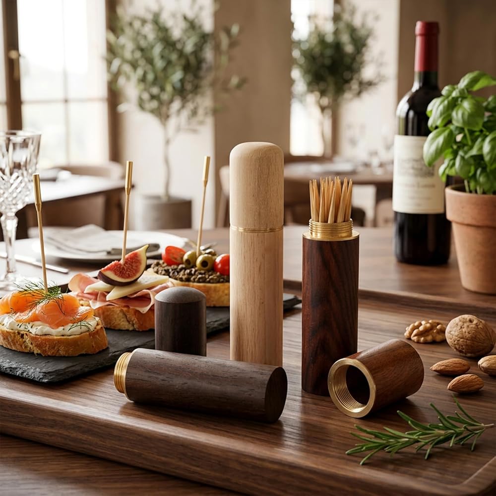 【Durable & Pleasant Texture】These wooden toothpick holders are made from solid wood, carefully polished to achieve a smooth and pleasant texture. The material is resistant to breaking and deformation, ensuring long-lasting use.