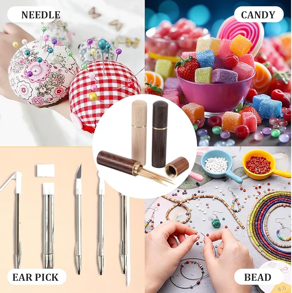 【Versatile Multipurpose Use】This mini storage box serves beyond just toothpicks. Its compact cavity is ideal for organizing and carrying various small items such as ear picks, sewing needles, pills, beads, and cotton swabs.