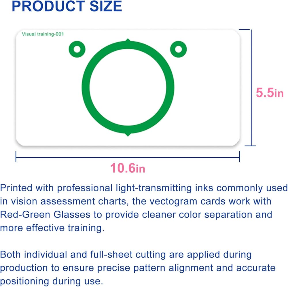 • تدريب يومي بسيط في المنزل أو العيادة مع حامل البطاقة والنظارات ذات اللون الأحمر والأخضر، يمكن للمستخدمين بسهولة إجراء جلسات تدريب بصرية مدتها 5-10 دقائق على مسافة عرض 35-40 سم. البطاقات المغلفة والتصميم المدمج يجعلها مناسبة للاستخدام في المنزل أو المدرسة أو العيادة.