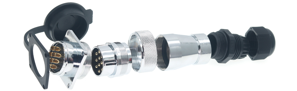 • 12pin، 16pin، 17pin: التيار المقنن (A): 10A قطر الاتصال × الرقم: Φ1.5x12 / Φ1.5x16 / Φ1.5x17 الجهد المقنن (AC.V.): 500 فولت تحمل الجهد (AC.V) 1 دقيقة: 1500 فولت مقاومة الاتصال: 2.5mΩ مواصفات الكابل: <1m㎡/16AWG