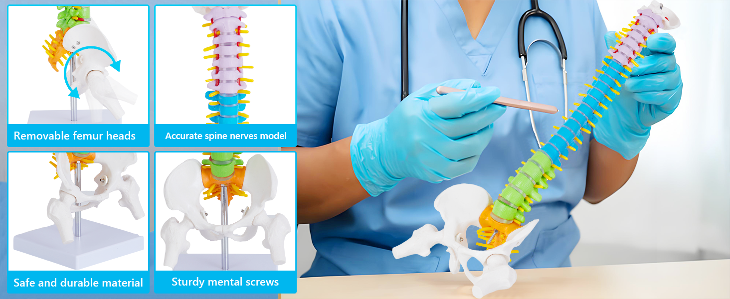 استخدام واسع النطاق: يمكن استخدام نموذج العمود الفقري هذا للتعلم والعرض من قبل أي شخص مهتم بالتشريح، بما في ذلك الأطباء والمعلمين والطلاب والآباء والفنانين. بفضل رؤوس الفخذ القابلة للإزالة، سيكون نموذج العمود الفقري التشريحي أداة مفيدة للطلاب الذين يدرسون فسيولوجيا العمود الفقري، وطلاب العلاج بتقويم العمود الفقري، وأخصائيي العلاج الطبيعي، وللتوضيح وتزيين العيادة.