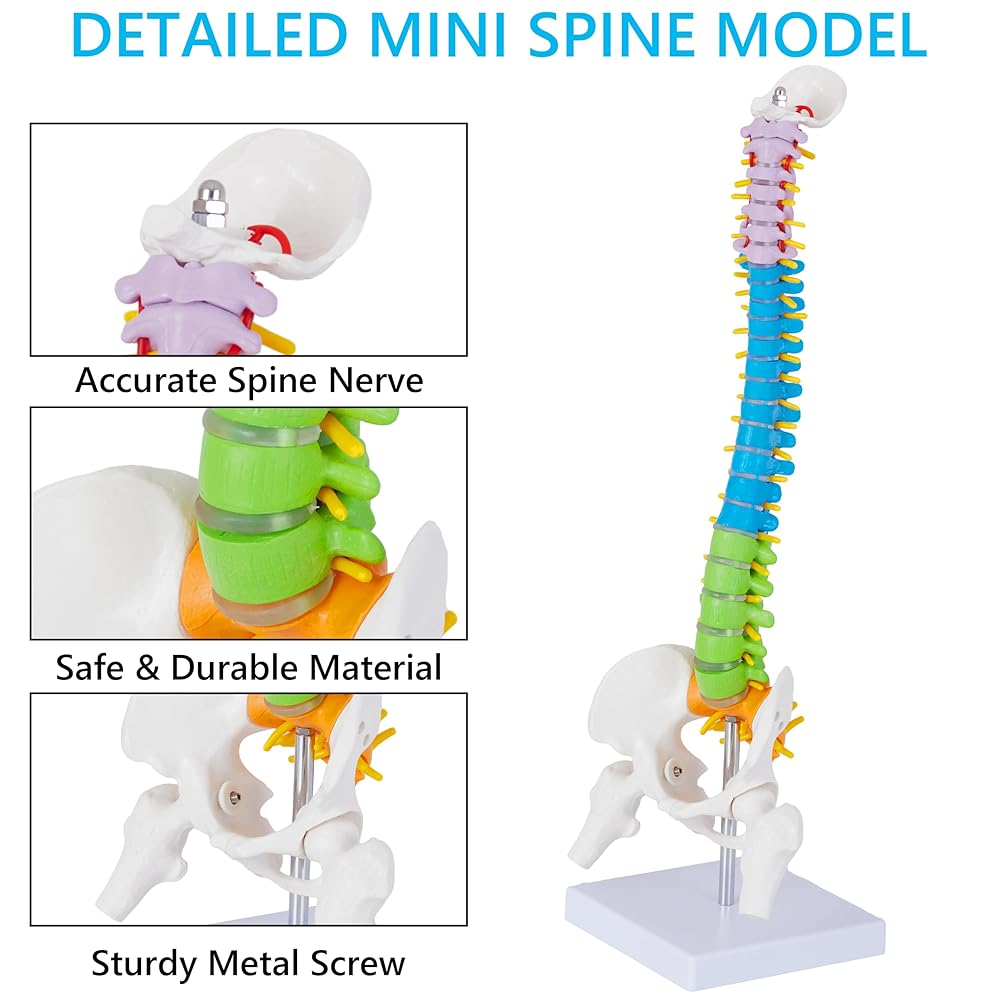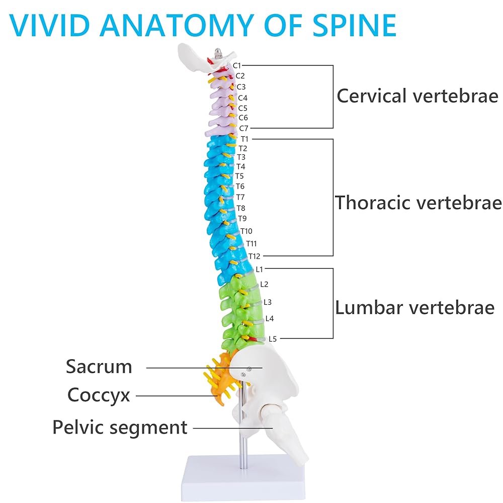 نموذج تشريح العمود الفقري ثلاثي الأبعاد: نموذج العمود الفقري الصغير الملون هو نموذج العمود الفقري المثالي لدراسة التشريح البشري لأنه تمثيل صغير ودقيق علميًا للعمود الفقري البشري