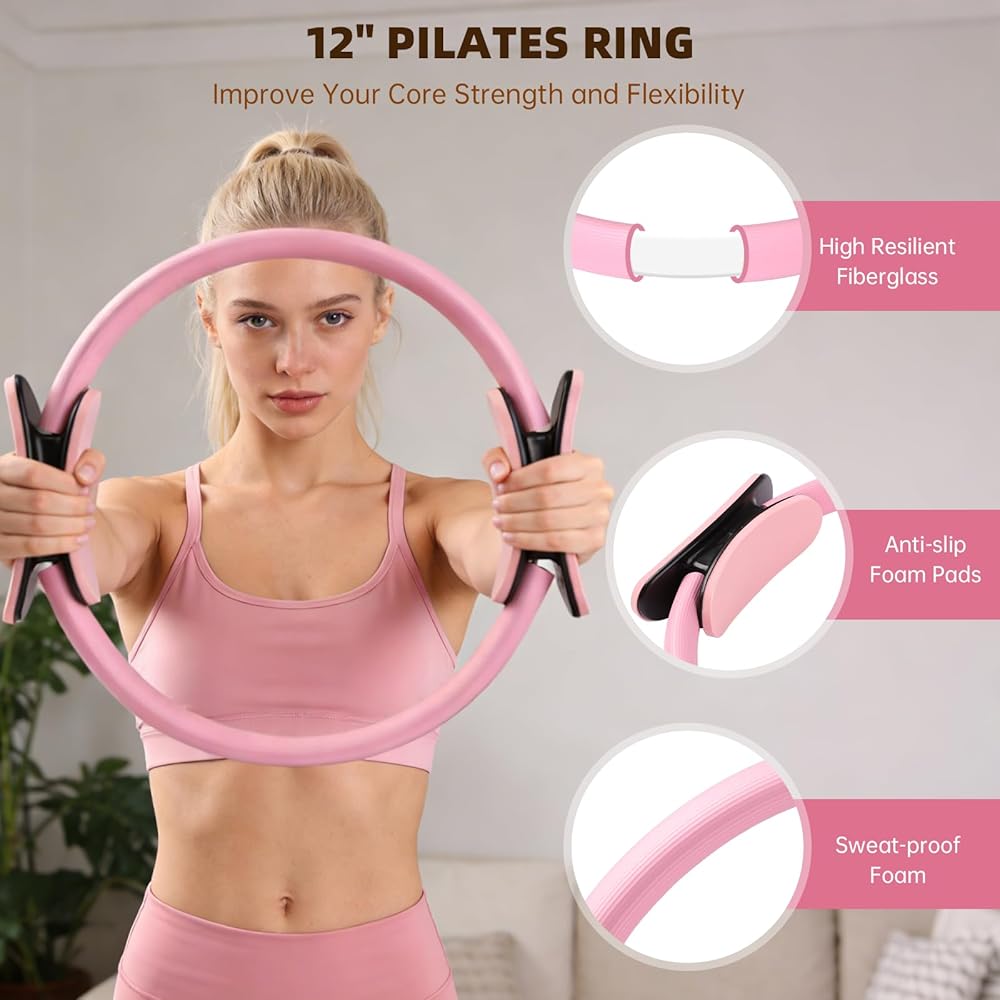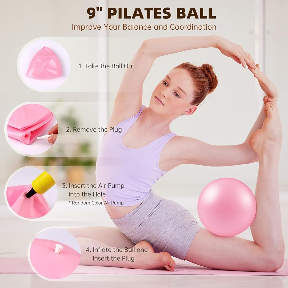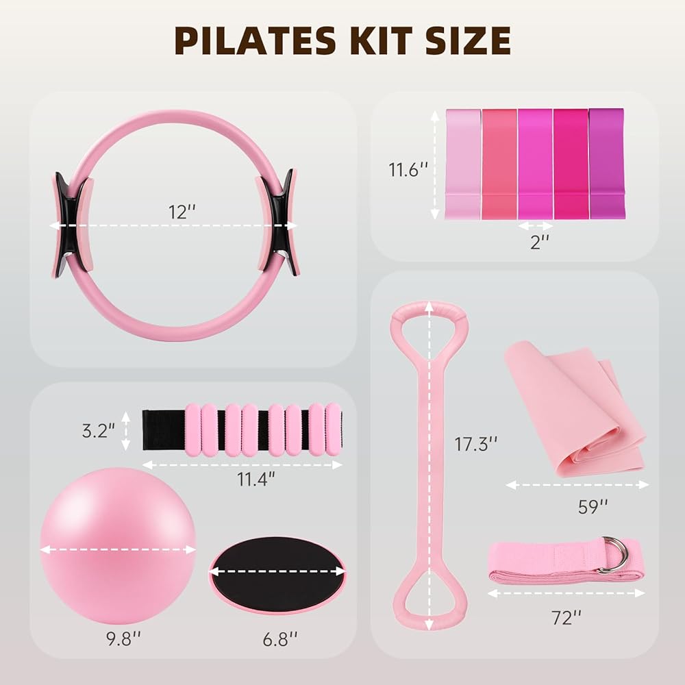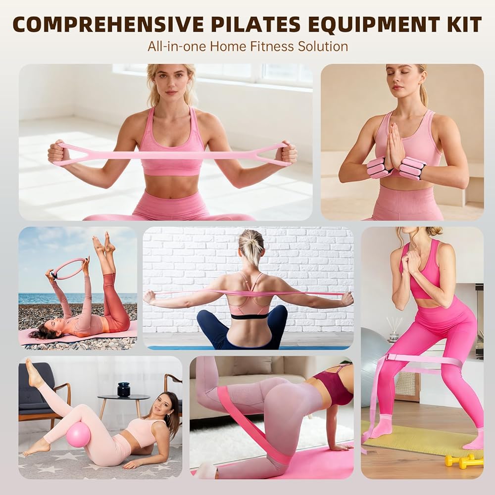 【مجموعة البيلاتس المنزلية الكاملة المكونة من 16 قطعة】 قم بتحويل مساحتك مع مجموعة البيلاتس المنزلية الكل في واحد. تتضمن حلقة مقاس 12 بوصة وكرة مقاس 9 بوصات وأوزان للكاحل و5 أشرطة مقاومة، توفر مجموعة أساسيات البيلاتس للنساء تنوعًا أكبر بنسبة 40% من المجموعات الأساسية لتجربة استوديو لكامل الجسم في المنزل.