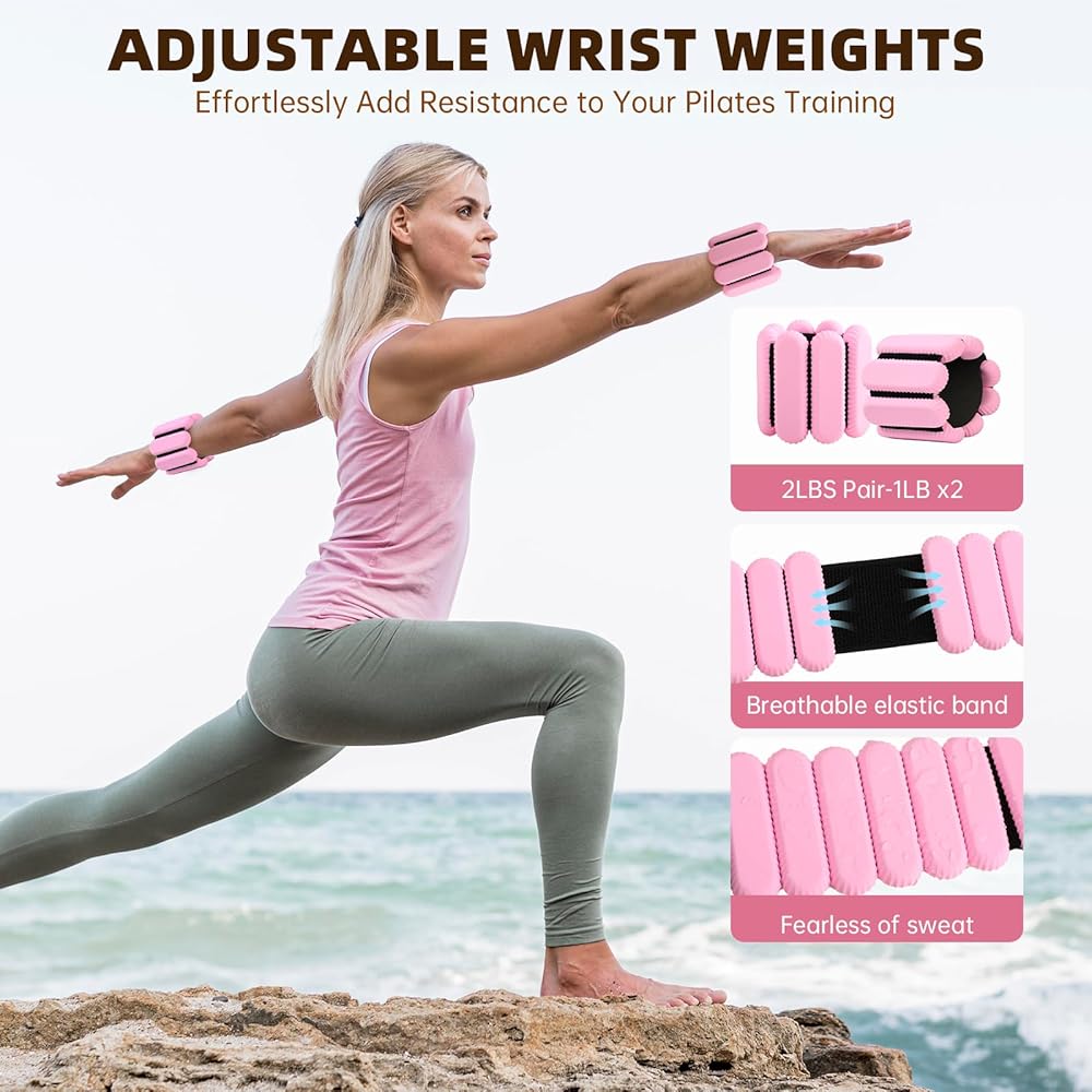 【مجموعة بيلاتيس مرجحة مع أوزان الكاحل】 احرق السعرات الحرارية بشكل أسرع عن طريق إضافة مجموعة بيلاتيس 2 رطل مع أوزان الكاحل إلى مجموعة تمارين البيلاتيس المنزلية الخاصة بك. توفر مجموعة البيلاتس المصنوعة من السيليكون الصديقة للبشرة مع الأوزان مقاومة بدون استخدام اليدين، وتتفوق على المعدات الضخمة لتدريب القوة المستمر.