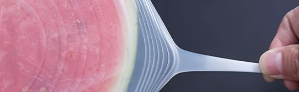 - سهل الاستخدام: يمتد بسهولة على الأوعية والحاويات وقطع المنتجات مثل البطيخ والشمام والفواكه الحمضية لتخزين الطعام بسرعة.