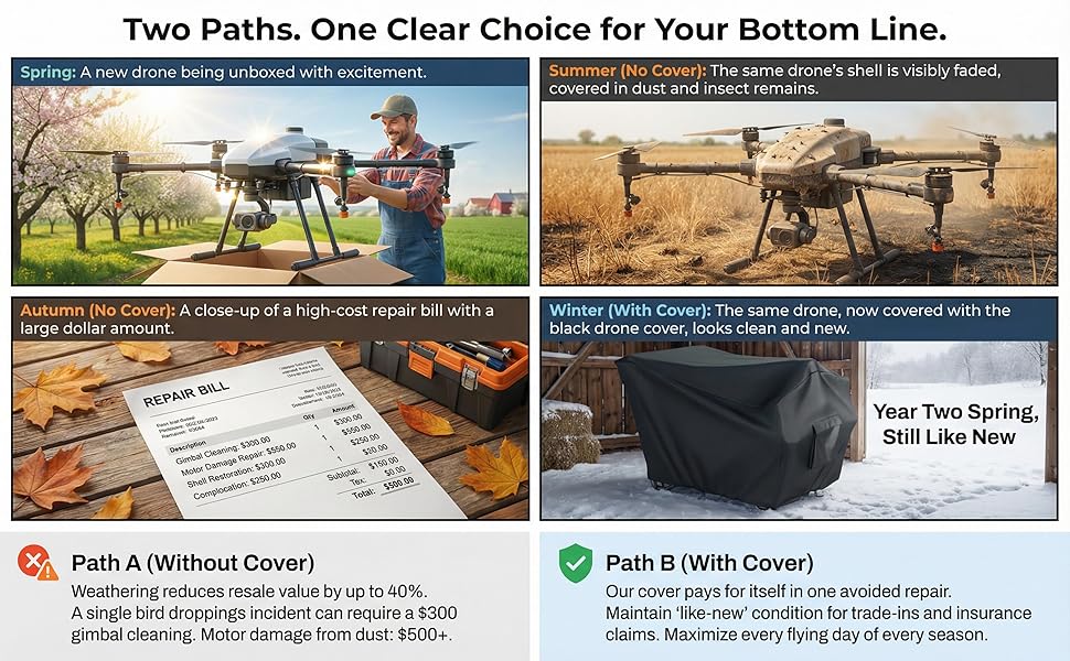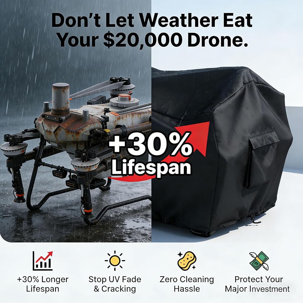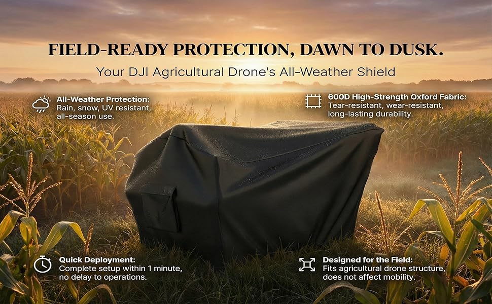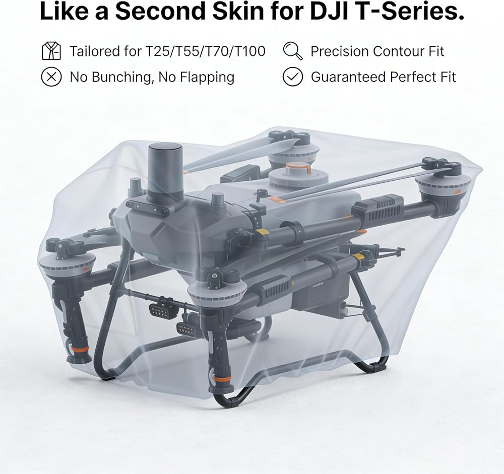 【غطاء واقٍ للطائرة بدون طيار الزراعية】: يعمل هذا الغطاء المصمم باحترافية مثل "سترة" مناسبة حسب الطلب، مما يحمي بشكل فعال طائرتك الزراعية بدون طيار. ويتميز بخصائص مقاومة للماء والغبار والأشعة فوق البنفسجية لتحمل الأوراق المتساقطة وتراكم الثلوج والخدوش وفضلات الطيور وغيرها من الحطام.