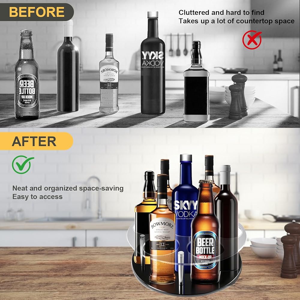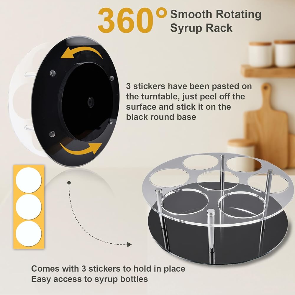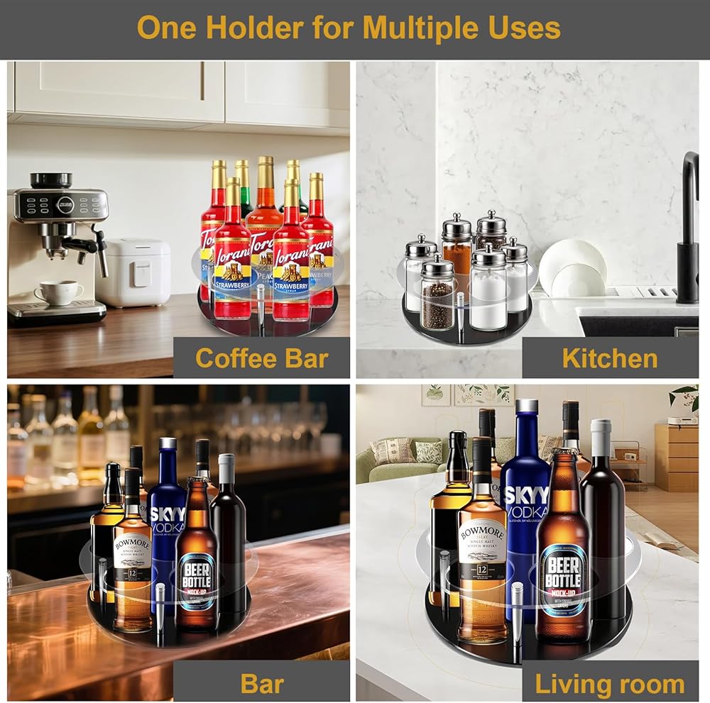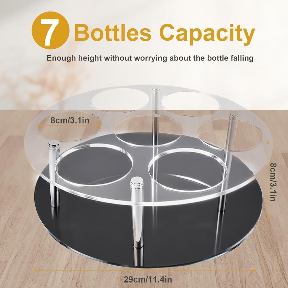 منظم شراب القهوة الدوار الكبير 7 زجاجات شراب للسطح، حامل زجاجة شراب أكريليك لمحطة بار القهوة، صينية عرض النبيذ القابلة للدوران