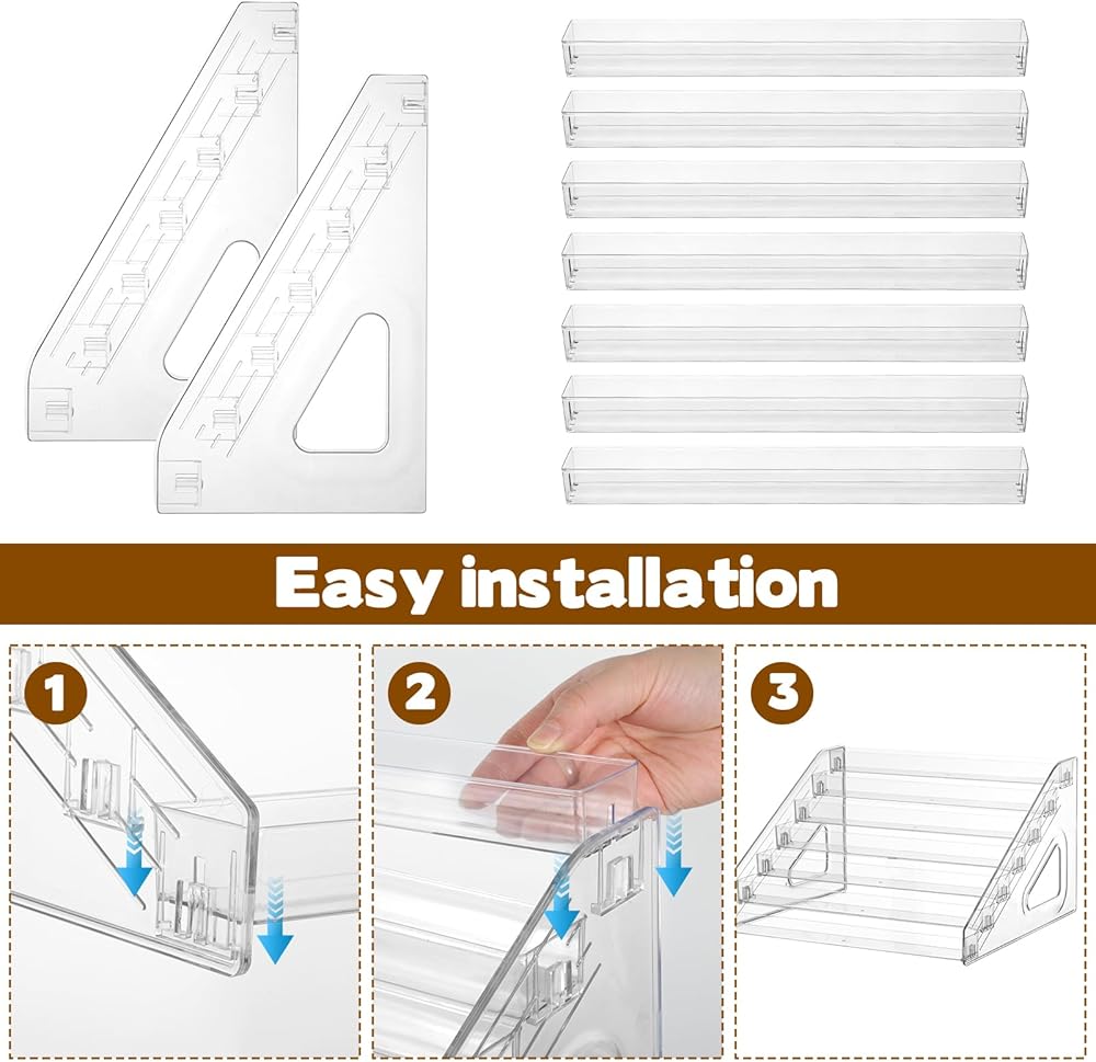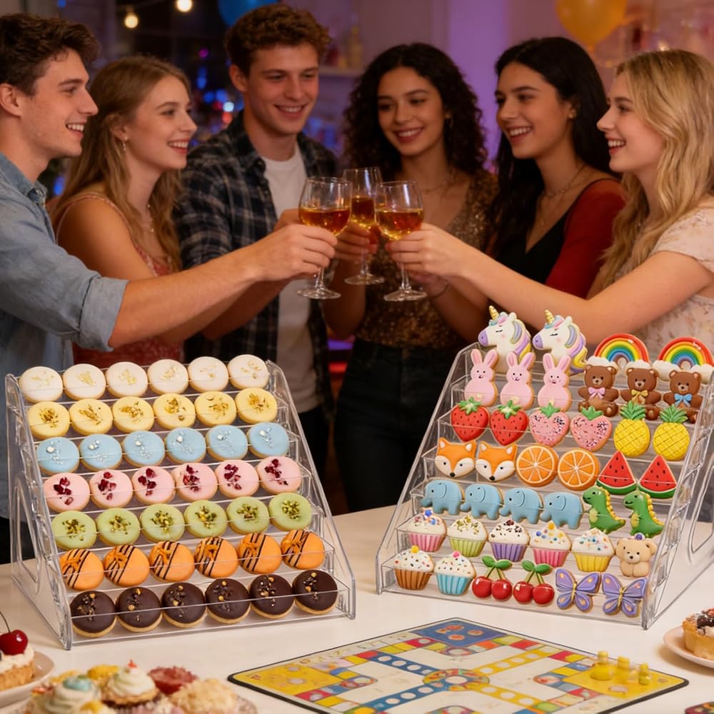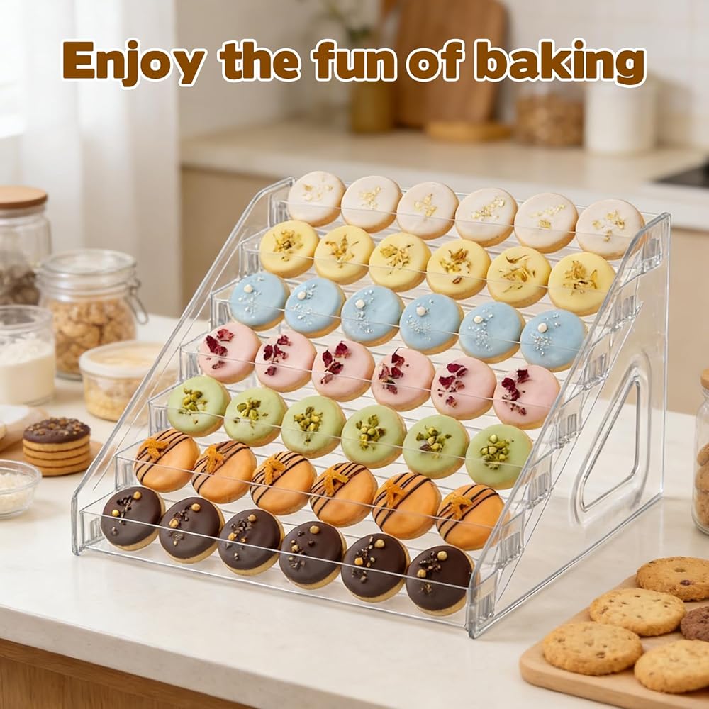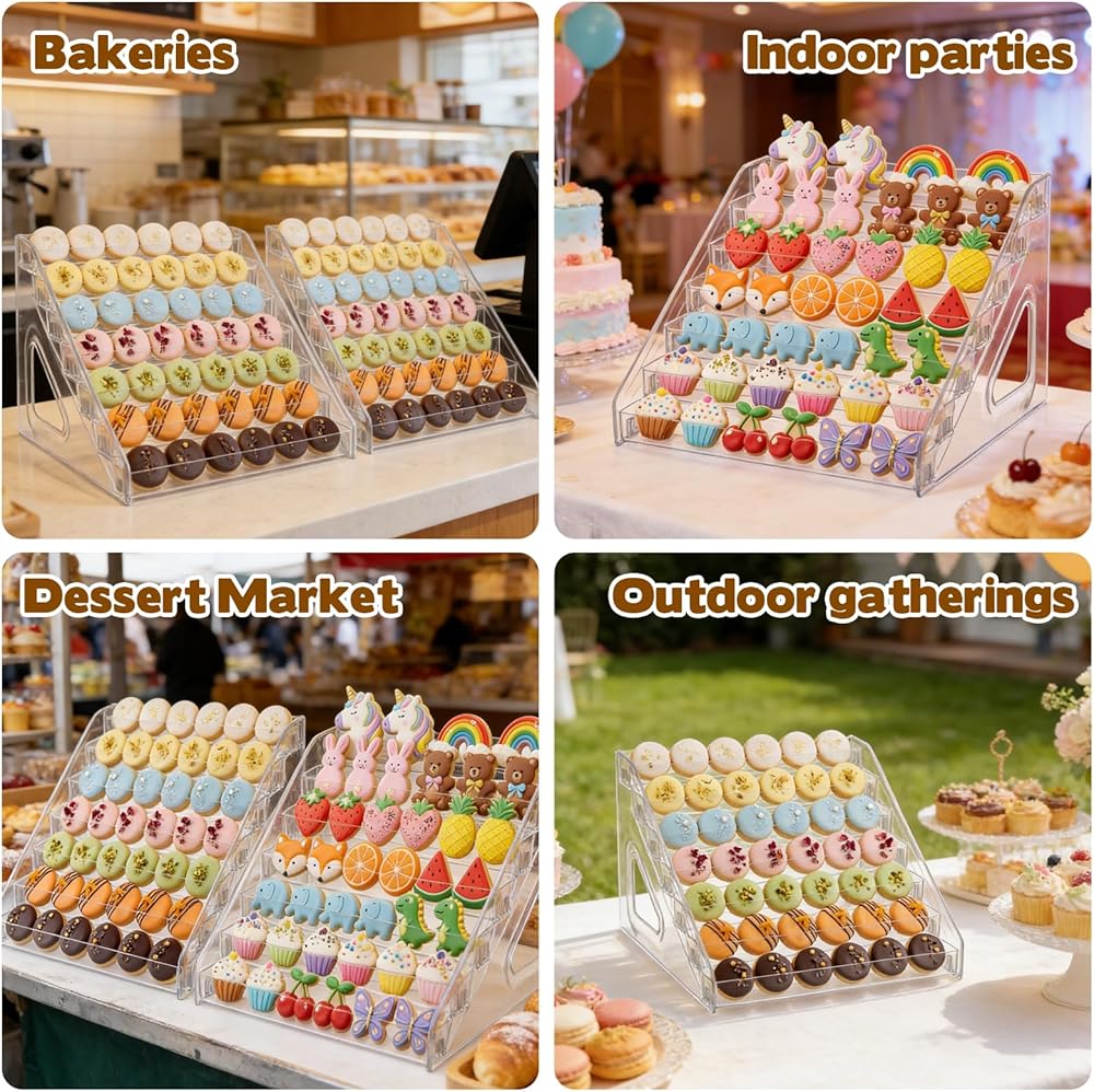 No-Tool Assembly: Designed for convenience, this clear cookie display stand shelf features a snap-on design that requires no screws or tools. Simply snap the display racks into the clips on the panel to complete the installation, and just as easily disassemble it for cleaning or storage