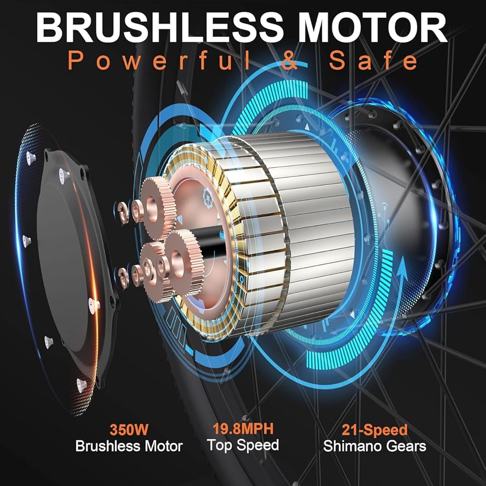 Powerful Brushless Motor: This 26'' electric bike is equipped with a powerful Peak 700W brushless motor, helping to reach a top speed of 20mph. Strong motor and wear-resistant tires allow you to face all kinds of terrain easily. It is very suitable for daily commuting, exercising, and mountain adventures.Tip: Electric bike has passed SGS Certified to UL 2849 and UL 2271.