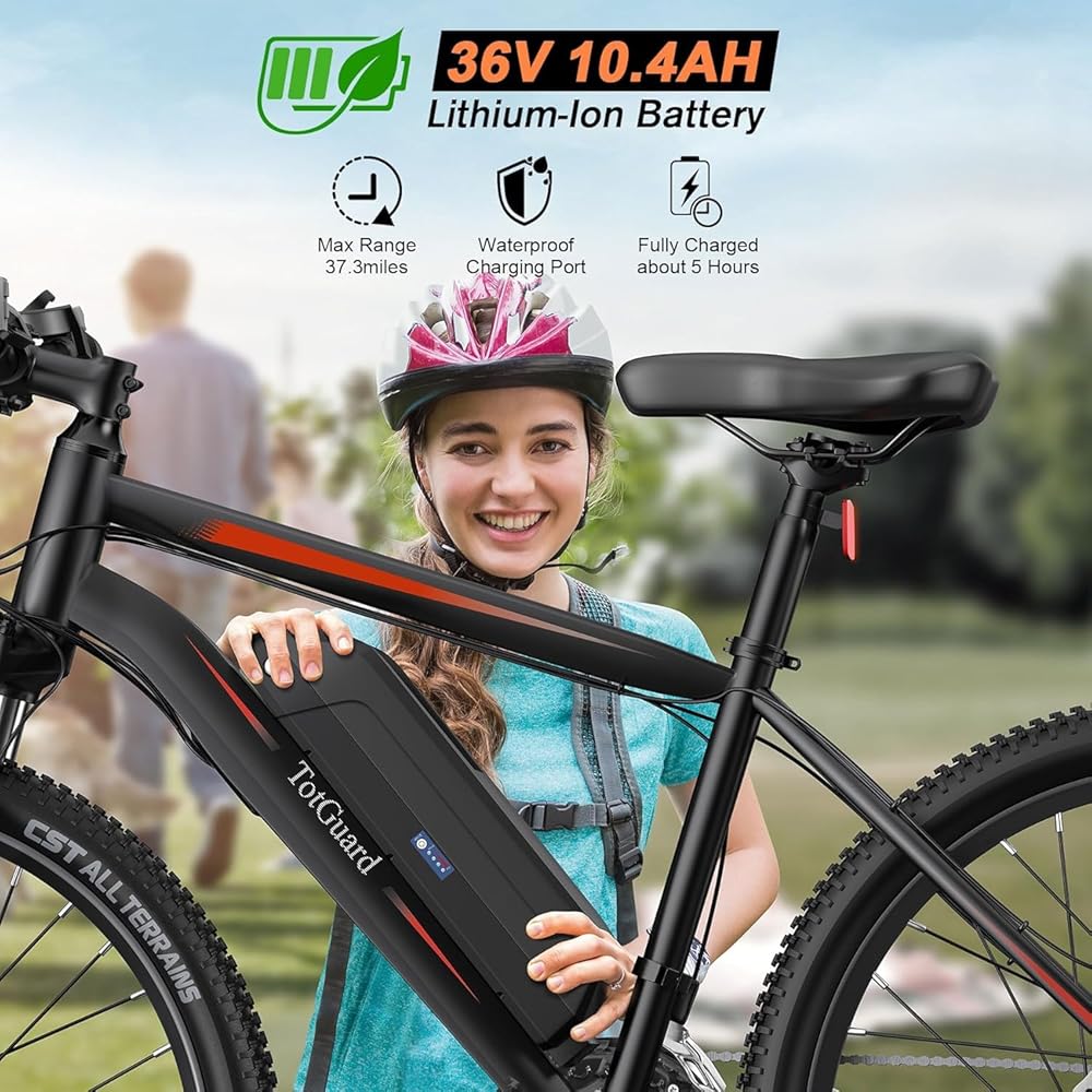 دراجة كهربائية TotGuard للبالغين، دراجة كهربائية مقاس 26 بوصة مع محرك بدون فرش بقدرة 700 وات، دراجة كهربائية بسرعة 20 ميلاً في الساعة مع بطارية قابلة للإزالة بقدرة 374.4 وات في الساعة، دراجة جبلية كهربائية بطول 50 ميلًا، 21 سرعة، معتمدة من SGS إلى UL 2849