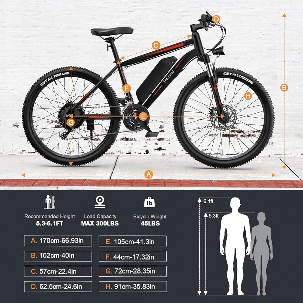 Easy Assembly & Customer Services: The electric bike comes 85% assembled. The assembly video is on the product page. Please inflate both tires for the first ride. Electric bicycle max load 300 lbs/135kg, recommended height: 5.3-6.1ft. If you have any problems with the adult electric bike, please contact us anytime.