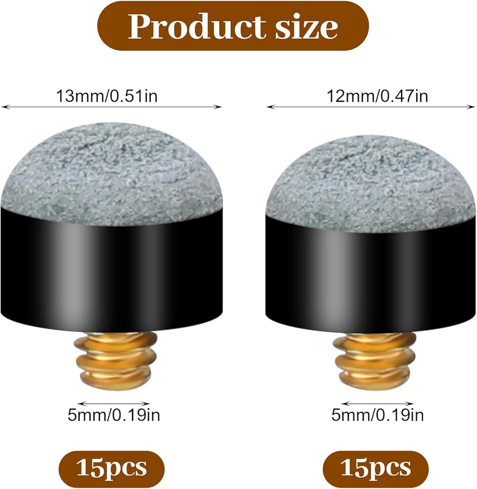 • Comprehensive Set: This set includes 30 pieces of pool cue tips, with 15 pieces each of 12mm and 13mm sizes. The ample quantity ensures you have enough replacements on hand for regular maintenance, allowing you to share with friends or keep spares for future use.