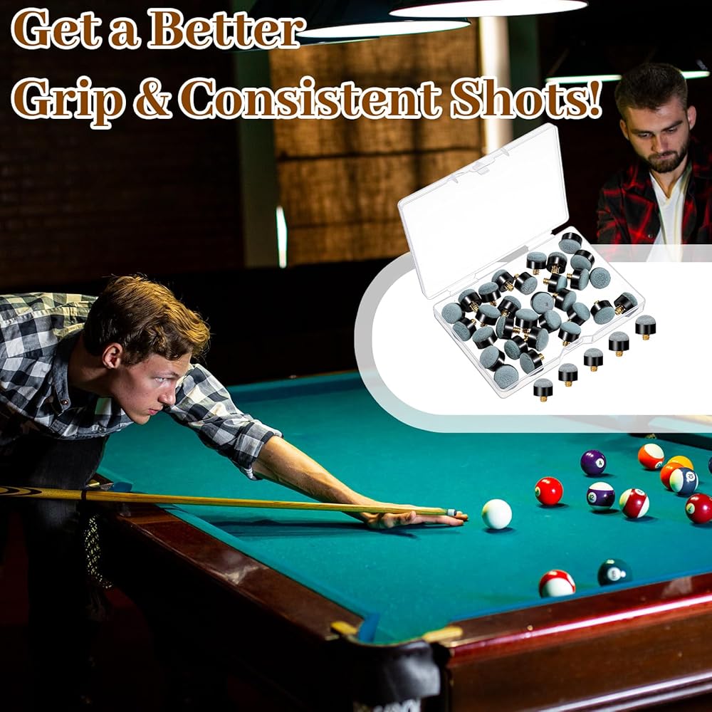 • Versatile Compatibility: These 30 pieces of billiard pool cue tips are designed to fit a wide range of pool sticks, making them ideal for both casual and professional players. With sizes of 12mm and 13mm, they cater to various cue types, ensuring a snug fit and optimal performance.