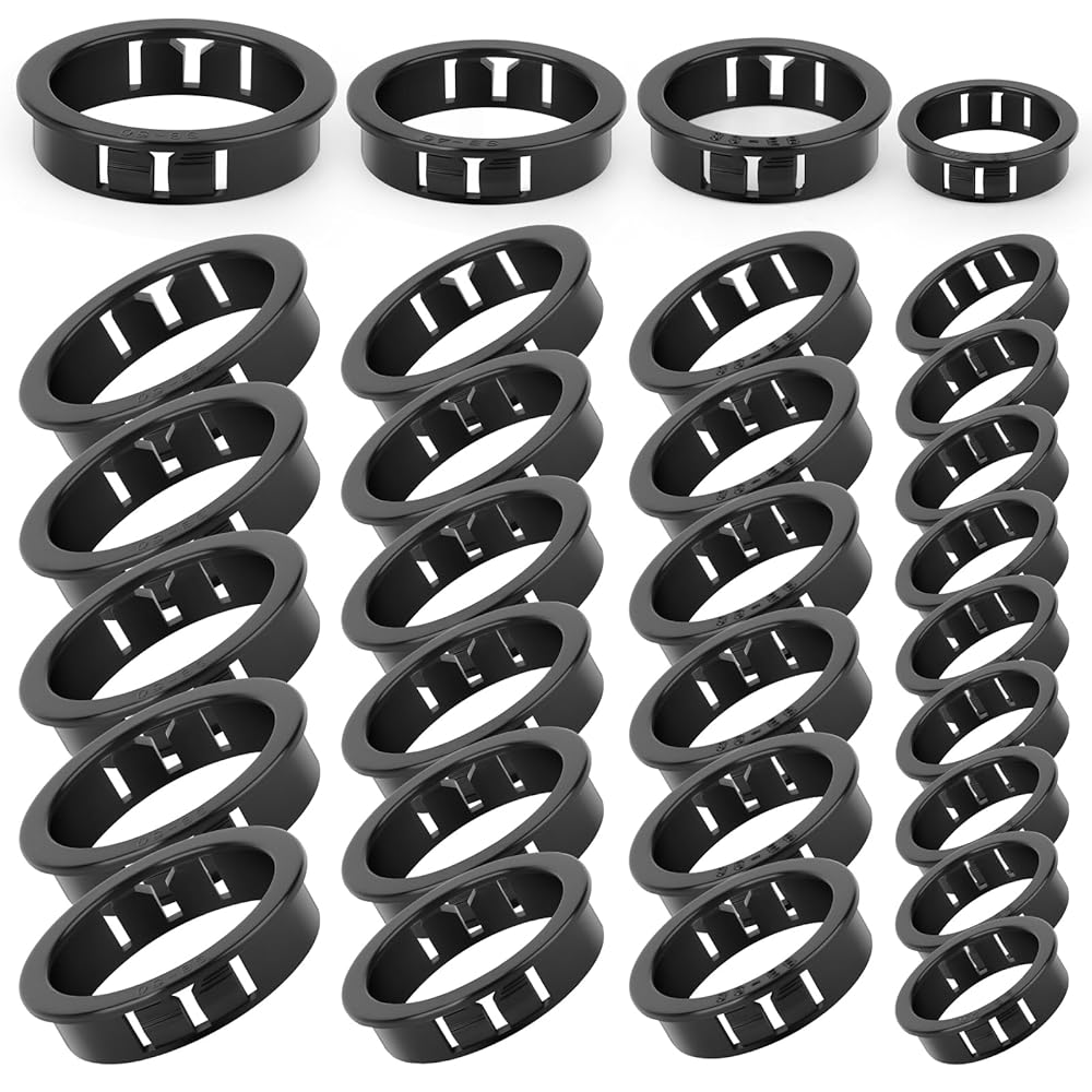 58 قطعة حلقة جلبة كبس سوداء، جلبة سلكية لحماية الكابلات 4 مقاس 1 بوصة، 1/1-2 بوصة، 1/3-4 بوصة، 2 بوصة