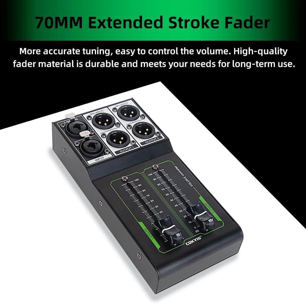 【70mm Extended Stroke Fader】This passive volume controller features an extended fader design for precise tuning and effortless control. Its superior quality ensures durability for long-term use while delivering transparent, pure sound quality, allowing for smooth, seamless volume adjustments. Enjoy both practical and audible control.