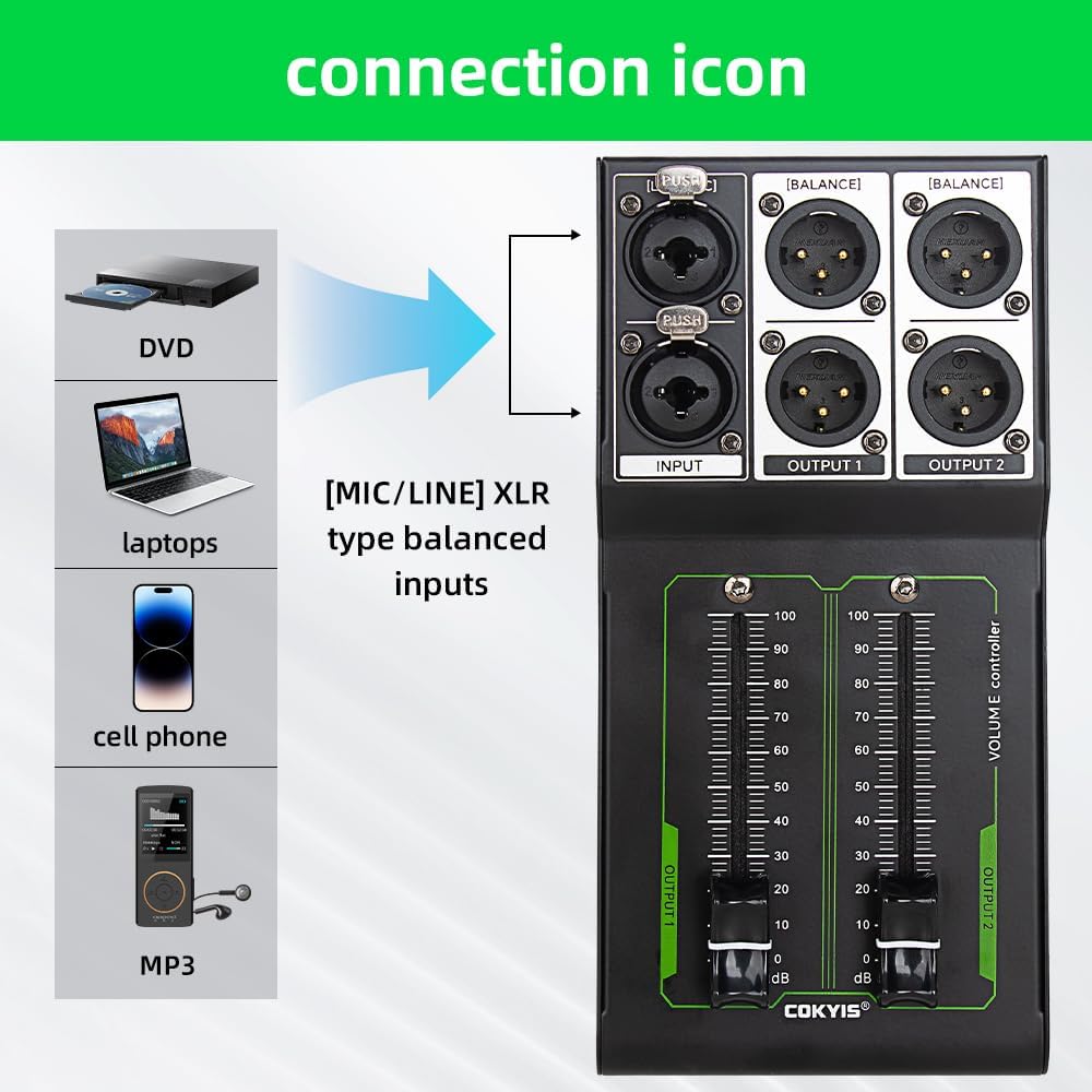 وحدة تحكم في مستوى صوت ستيريو سلبي، وحدة تحكم في استوديو ستيريو بمدخلين ومخرجين XLR، التوصيل والتشغيل لمكبرات صوت الاستوديو، صوت منزلي مع واجهات معدنية، رائعة للأداء المباشر