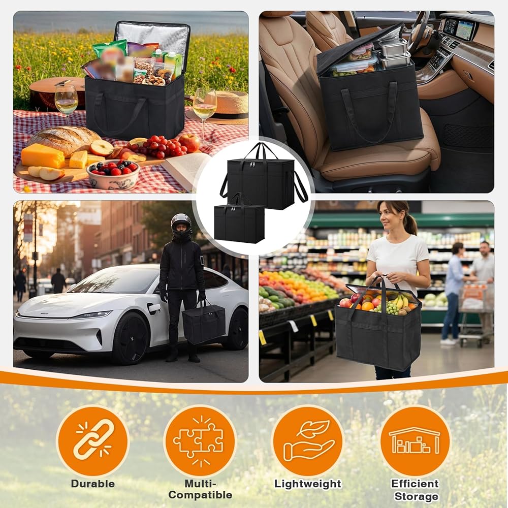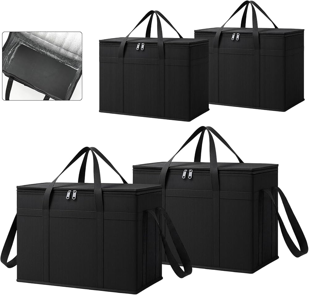 4 عبوات من أكياس توصيل الطعام المعزولة للوجبات الساخنة والباردة، بمقاسات XXXL وXL، أكياس بقالة معزولة قابلة لإعادة الاستخدام مع ألواح قاعدة قابلة للإزالة لتقديم الطعام والبيتزا والسفر والتسوق
