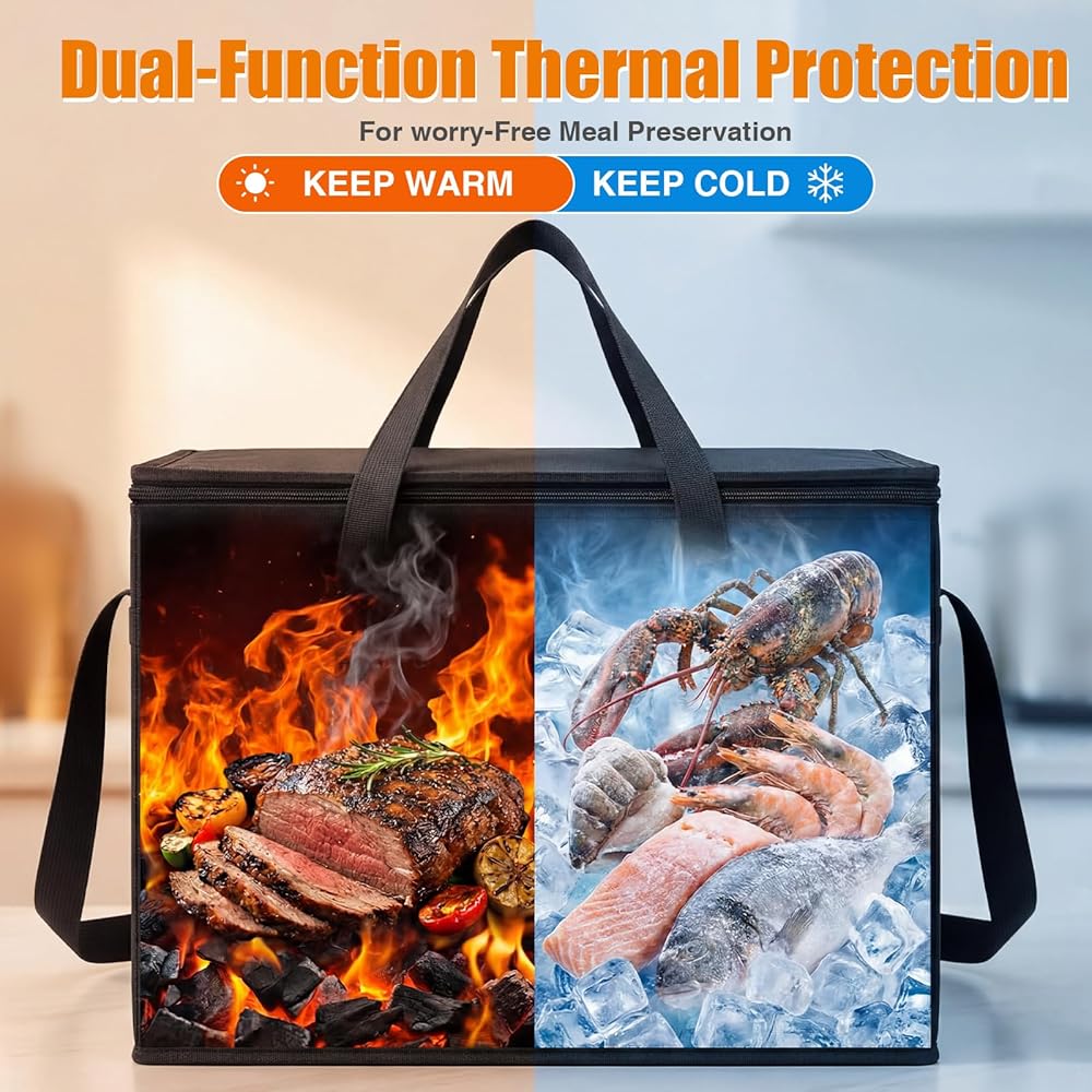 • Hot and Cold Dual Insulation: the insulated catering bags are suitable for storing hot and cold meals, effectively maintaining the temperature of the food, ensuring the heat and freshness of the food during delivery, and easily solving your shopping, gathering, dining and other needs