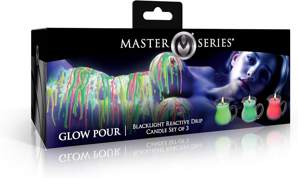 GLOWING WAX FOR BDSM FUN – UV-reactive wax adds a bold visual twist to bdsm scenes, glowing under blacklight for intense atmosphere.