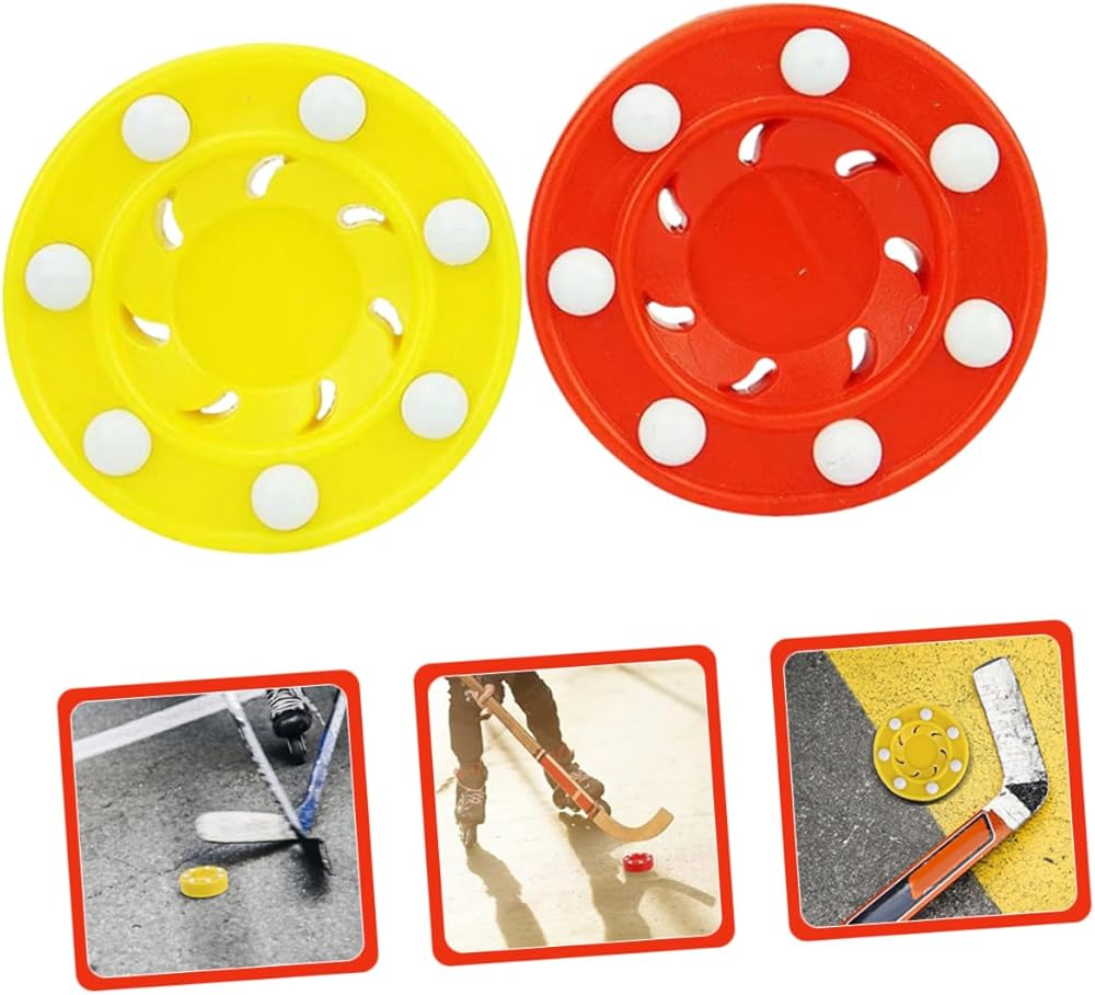 BESPORTBLE قطعتان من كرات الهوكي الدوارة للاستخدام الداخلي والخارجي، كرات تدريب منخفضة الارتداد لممارسة هوكي الشوارع، مادة مطاطية قوية لأداء مثالي