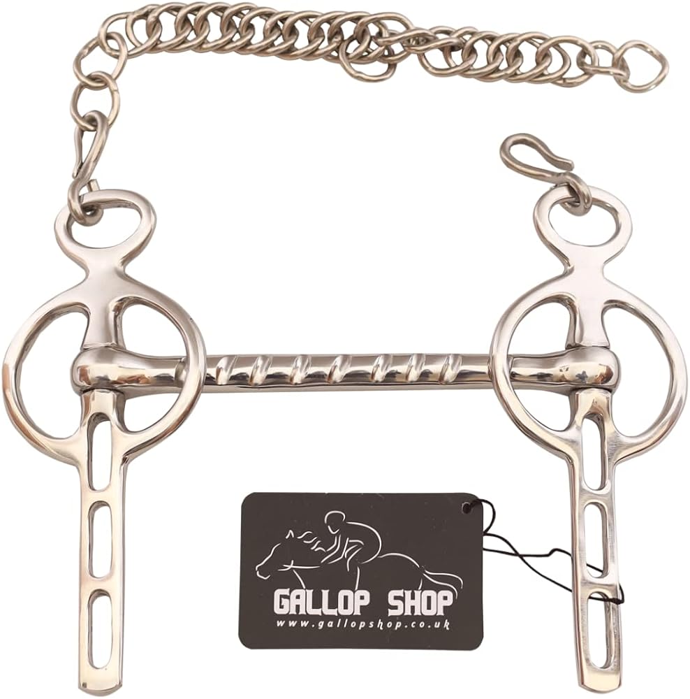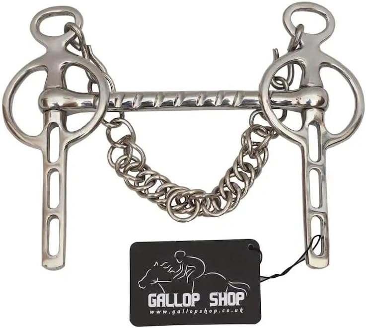 This Twisted Mouthpiece Pelham Bit is crafted for riders seeking enhanced leverage and responsive control. The twisted metal mouthpiece increases pressure for clearer rein cues, while the Pelham shanks allow for dual rein configurations—ideal for balancing snaffle and curb action. The included curb chain adds chin pressure for refined communication, making this bit suitable for advanced disciplines and horses needing precise guidance. Branded with a “Gallop Shop” tag featuring a horse and rider graphic, this bit combines performance with professional presentation. 📝 Handmade Product Note Please note that this bit is handmade, and as such, minor imperfections or slight variations in finish may occur. These are natural results of artisanal craftsmanship and do not affect the bit's performance or durability. Each piece is unique, reflecting the care and tradition behind its creation.