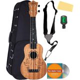 Adding value to your purchase, Austin Bazaar bundles your instrument with necessary accessories. Everything you need to start playing immediately comes in one box. Save yourself the hassle and save some money while you're at it. A gig bag is included so you can keep your instrument safely packed away when you're on the go. The ukulele includes Aquila strings. An easy-to-use clip-on tuner is included so you can keep your instrument in tune. A strap is included so you can practice or better yet perform while standing up. An Austin Bazaar instructional DVD is included so you can pick up some tips while learning your new instrument. An Austin Bazaar polishing cloth is included so you can keep your new instrument in mint condition.
