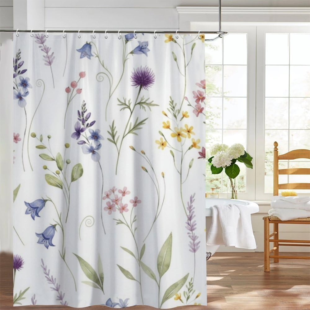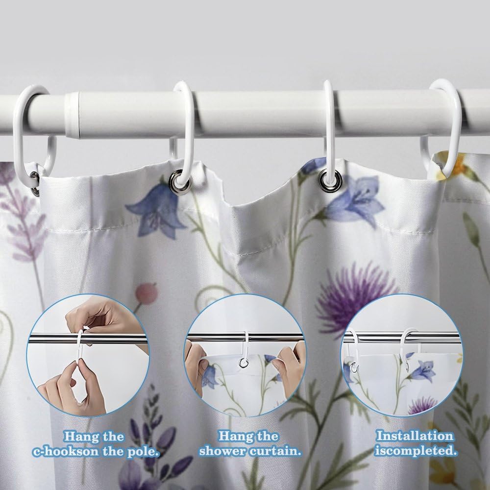 • 【East To Install】Equipped with 12 rust-proof metal grommets and thickened C-shaped curtain hooks, this cottage core curtains features grommet holes that fit all types of rings or hooks for easy replacement and cleaning. The metal grommets prevent hole tearing and extend the curtain's service life. Installation is quick and hassle-free—simply hang the grommets onto your shower rod, making farmhouse shower curtains for bathroom suitable for various bathroom hanging needs.