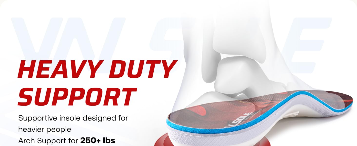 【نعل داخلي لتقويم العظام عالي التحمل】: تم تصميم هذا النعل الداخلي لدعم القوس لكل من الرجال والنساء، خصيصًا للأفراد الذين يزيد وزنهم عن 250 رطلاً (حوالي 113 كجم) (متوافق أيضًا مع الأفراد الأخف وزنًا). يتميز هذا النعل بدعم معزز لقوس القدم وتقنية التوسيد المتقدمة، حيث يعالج بشكل فعال الضغط الإضافي الناتج عن زيادة الوزن، ويمتص التأثير أثناء المشي ويوزع الضغط بالتساوي على القدم بأكملها. مثالي للوقوف لفترات طويلة والأنشطة اليومية، فهو يساعد على تخفيف إجهاد القدم وتقليل الصدمات مع كل خطوة.