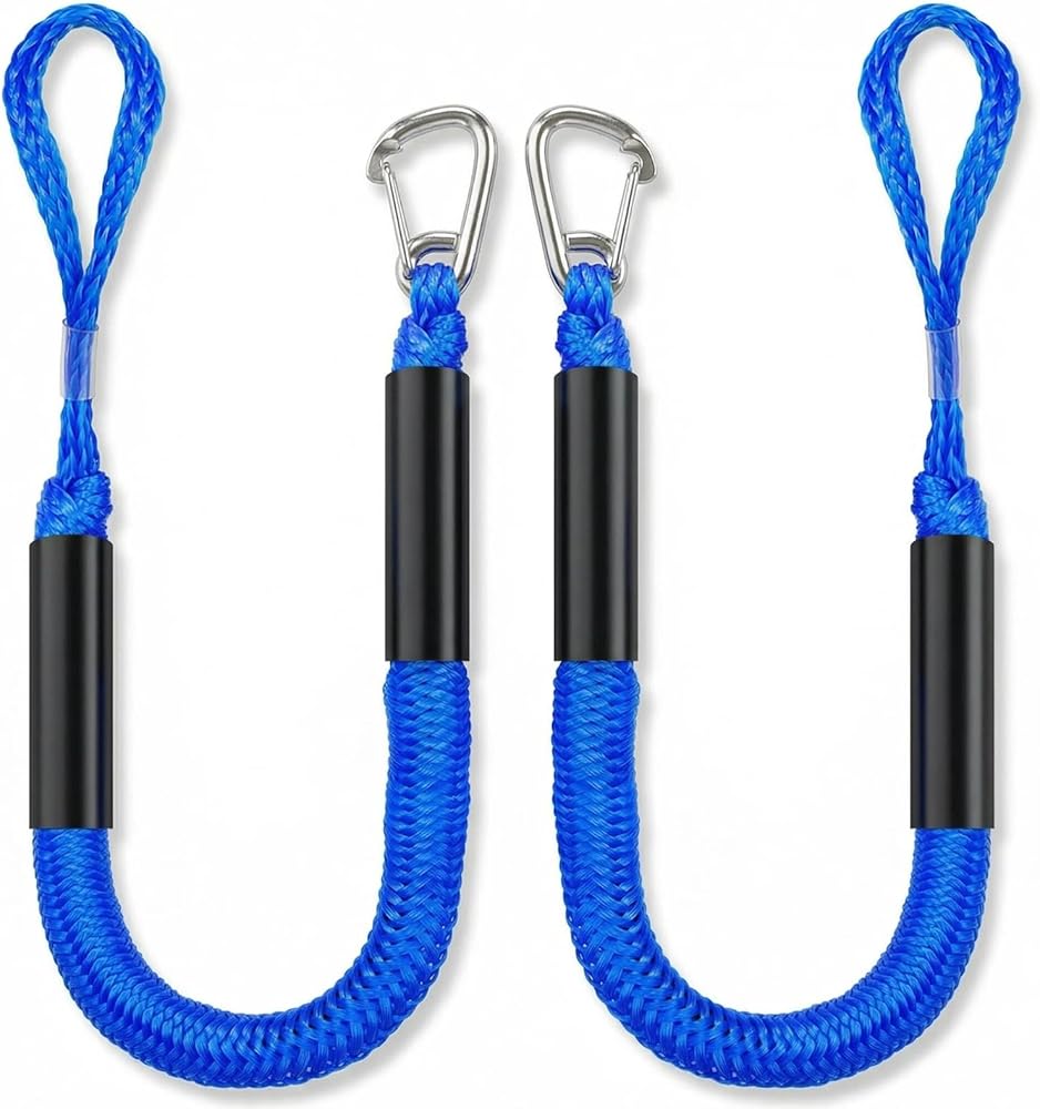 Standard 4ft or 6ft dock lines are often too long for personal watercraft (PWC), leading to excessive movement and potential hull damage. Our 2ft bungee dock line provides the perfect tension for Jet Skis and small boats, keeping them snugly secured to the dock while the internal bungee absorbs every ripple and wave.
