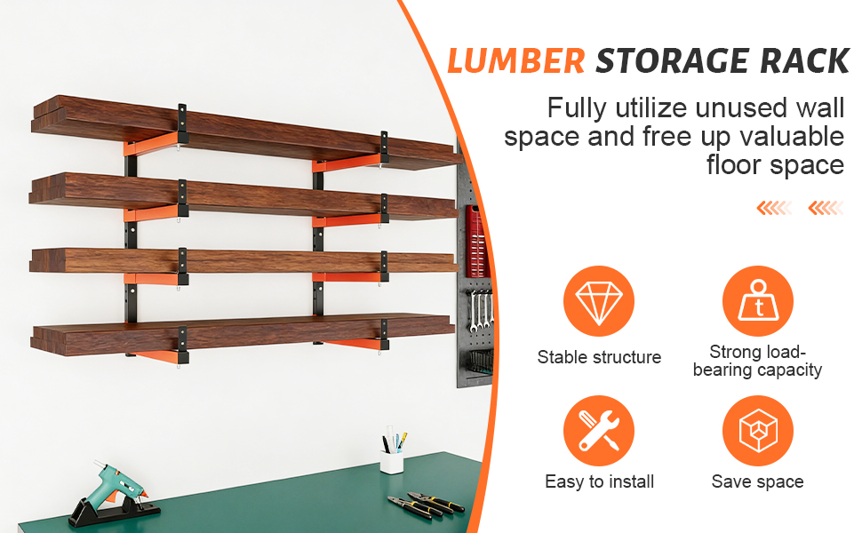 تركيب سهل باستخدام الأجهزة الفاخرة: تم تصميم مسار التثبيت والأقواس للتثبيت المباشر. رفوف تخزين الخشب مناسبة للتركيب على الجدران الخرسانية أو الطوب أو الخشبية. بمجرد تركيبه، ستحصل على أساس تخزين صلب يدوم لسنوات.