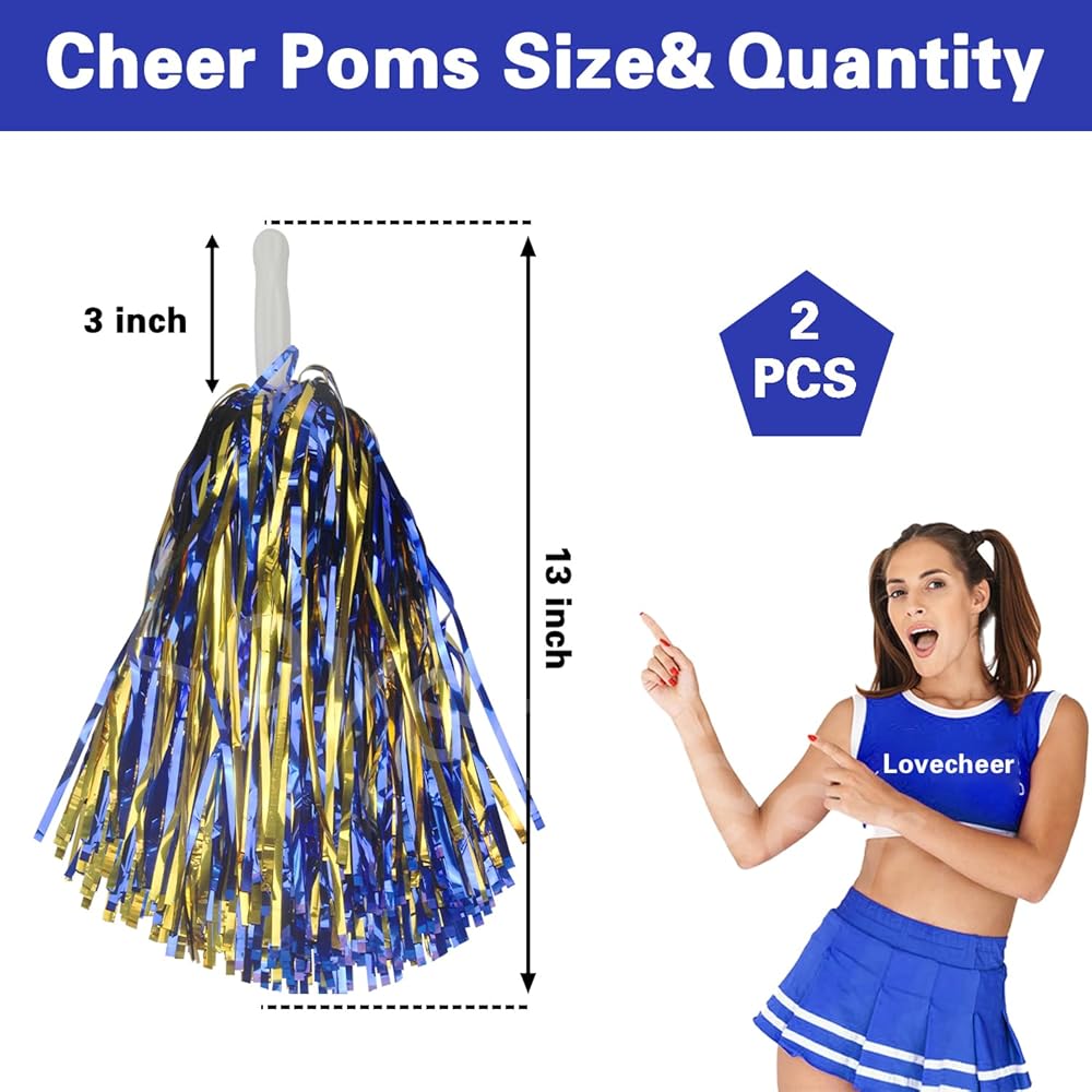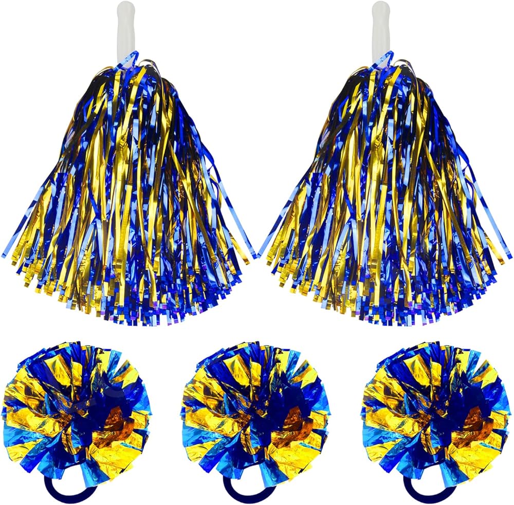 Cheerleading Set: 2pcs 13inch plastic cheerleading pom poms , lightweight and easy to carry for everyone; 3pcs mini pom pom elastic bands, decorate your braids and wrists, great for matching any cheerleading ensemble