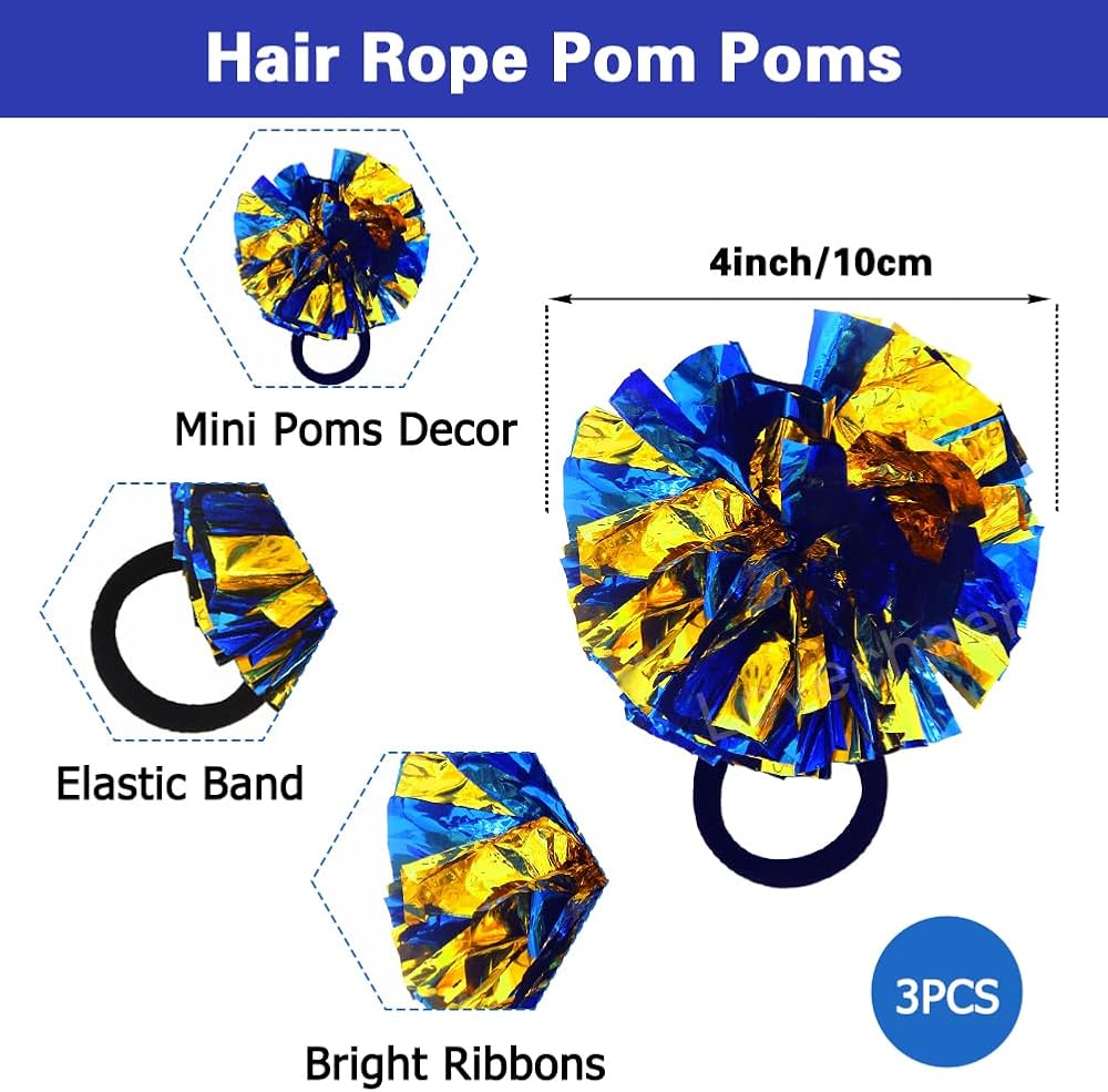 Mini Pom Pom Hair Ropes: The bands' diameter is 2 inch/ 5cm (elastic), pompoms diameter of 4 inch/ 10cm, they can be easily styled with a variety of hairstyles such as ponytails, buns, or braids; Also can be decoration on you wrist; Having the right sized cheerleading hair bow ensures a comfortable fit and enhances performance by maintaining the style intact during active cheerleading routines