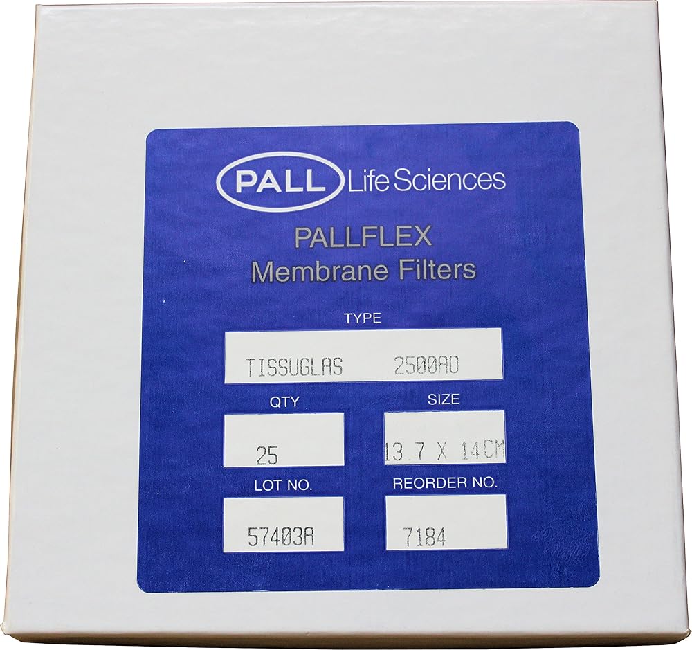 Pall No. 7184 / 2500 Grade 2500AO Glass Fiber Slotted Filters 13.7 cm x 14.3 cm (25 per pack) Uses with High Volume Cascade Impactors