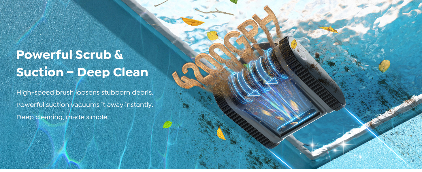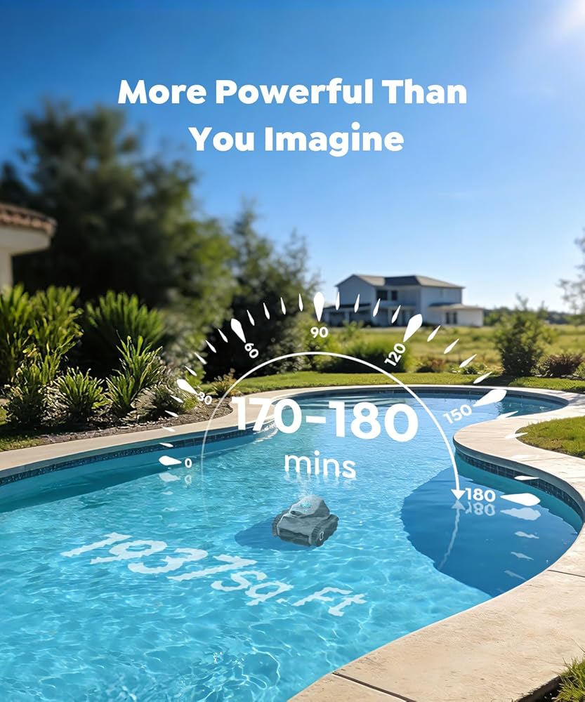 • وقت تشغيل ممتد: تتميز بعمر بطارية رائد في الصناعة يتراوح بين 170 و180 دقيقة (في الوضع الاقتصادي)، وتوفر أداء تنظيف بدون توقف. مثالية لحمامات السباحة الموجودة في الأرض، تضمن البطارية طويلة الأمد تنظيفًا شاملاً دون إعادة الشحن بشكل متكرر.