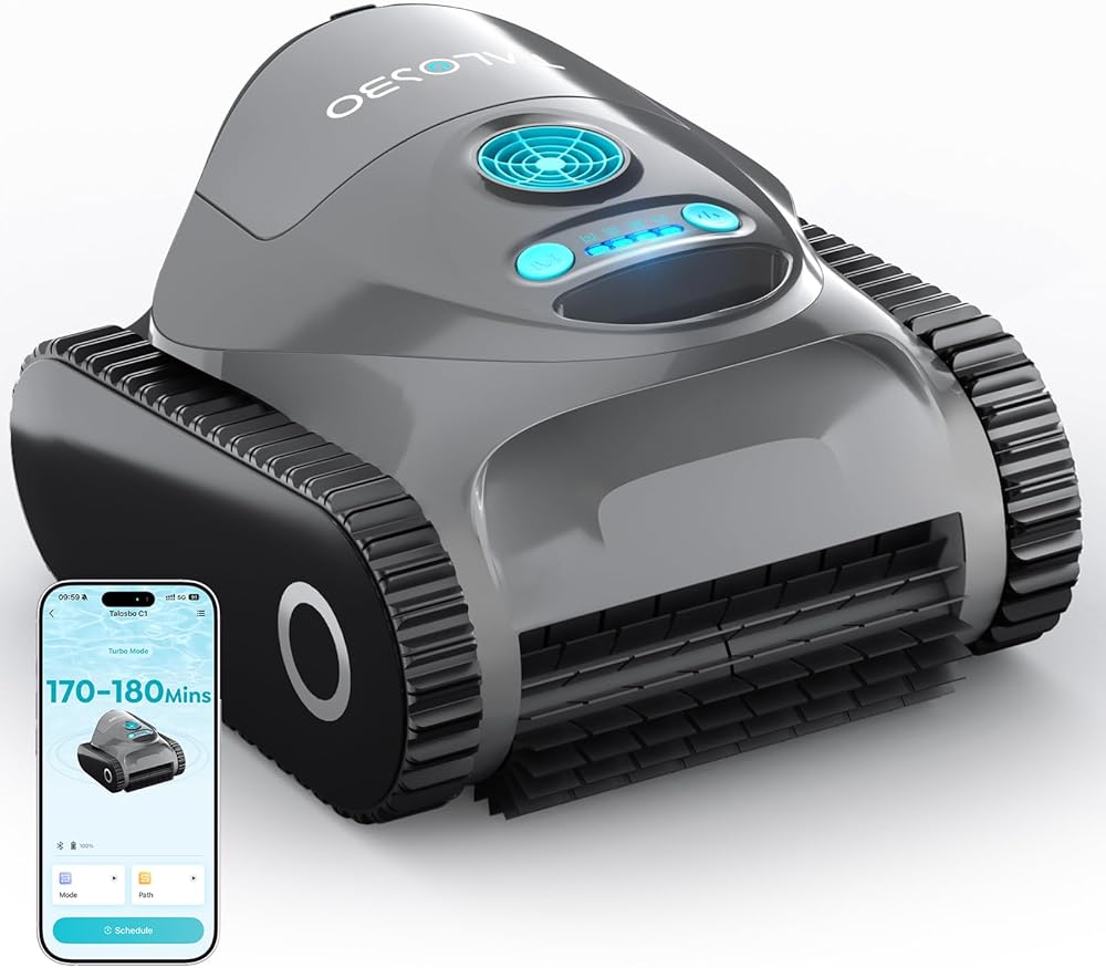 منظف ​​حمام السباحة الآلي C1، 170-180 دقيقة، شفط قوي للغاية، تنظيف الجدران وخط الماء، مكنسة حمام السباحة لحمامات السباحة الداخلية، ترشيح مزدوج، ملاحة ذكية، دعم التطبيقات