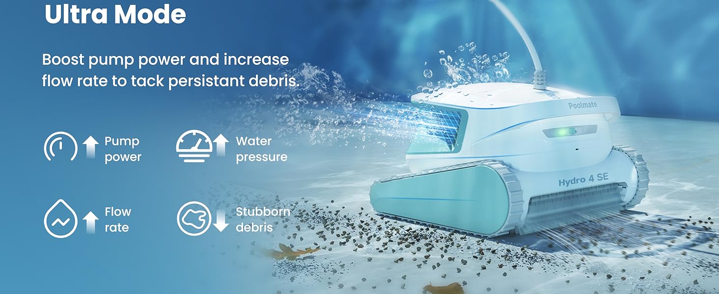 • وضع التنظيف الفائق وشفط 5070 جالونًا في الساعة: تعمل مضخة الطرد المركزي المزدوجة بقدرة 150 وات على تعزيز قوة الشفط، مما يوفر 5070 جالونًا في الساعة من الشفط. يعمل وضع Ultra Clean على التخلص من البقع العنيدة ويحافظ على حمام السباحة في الفناء الخلفي غير المستخدم خلال فصل الشتاء.