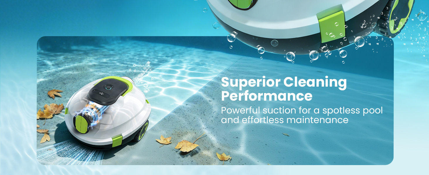 【التنقل الذكي】- قم بتخطيط حمام السباحة الخاص بك في مسارات متعرجة لتنظيف أكثر شمولاً وتقليل البقع المفقودة مقارنة بالمكنسة الكهربائية الروبوتية الأساسية الأخرى. يوفر الوقت والطاقة مع عدد أقل من عمليات التنظيف المتكررة
