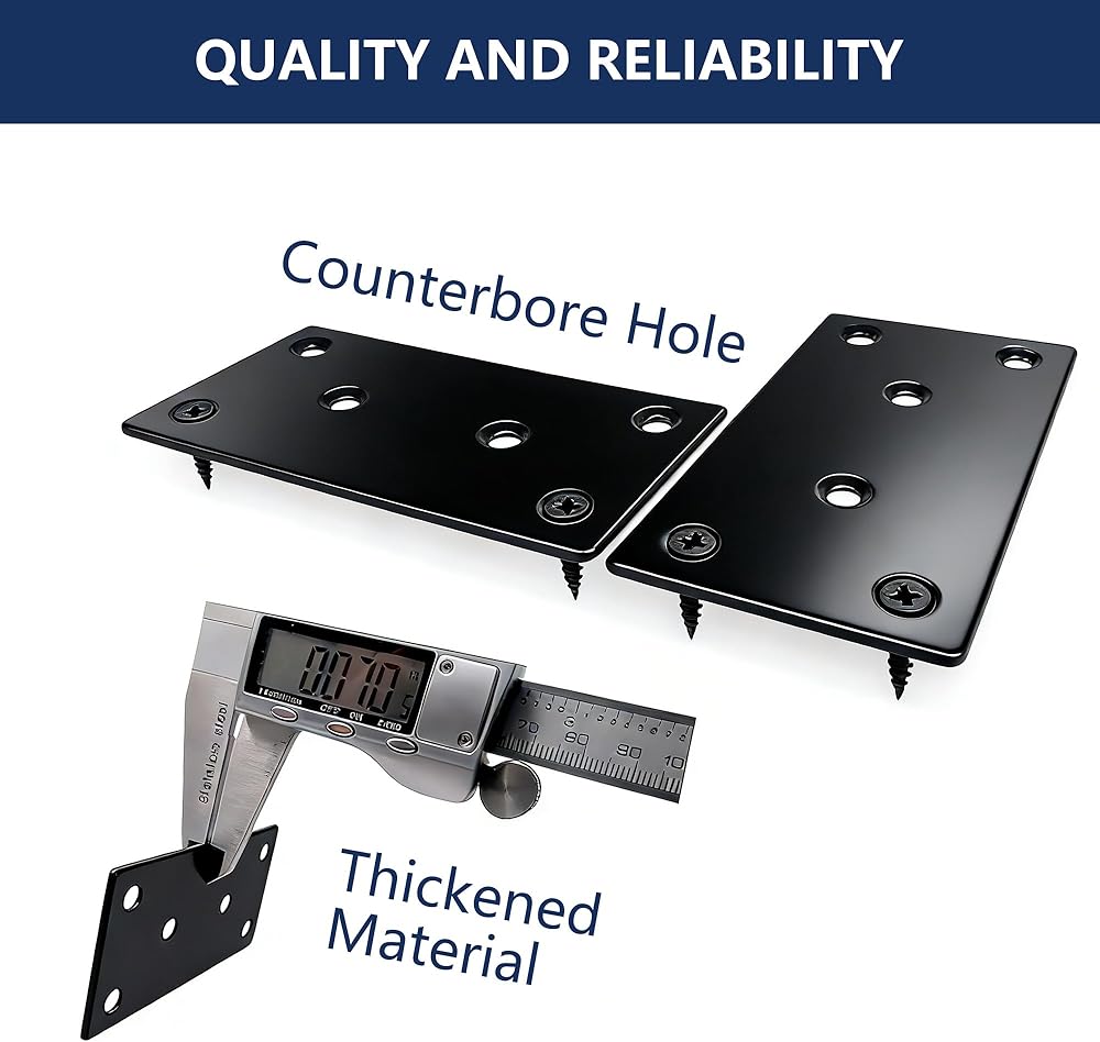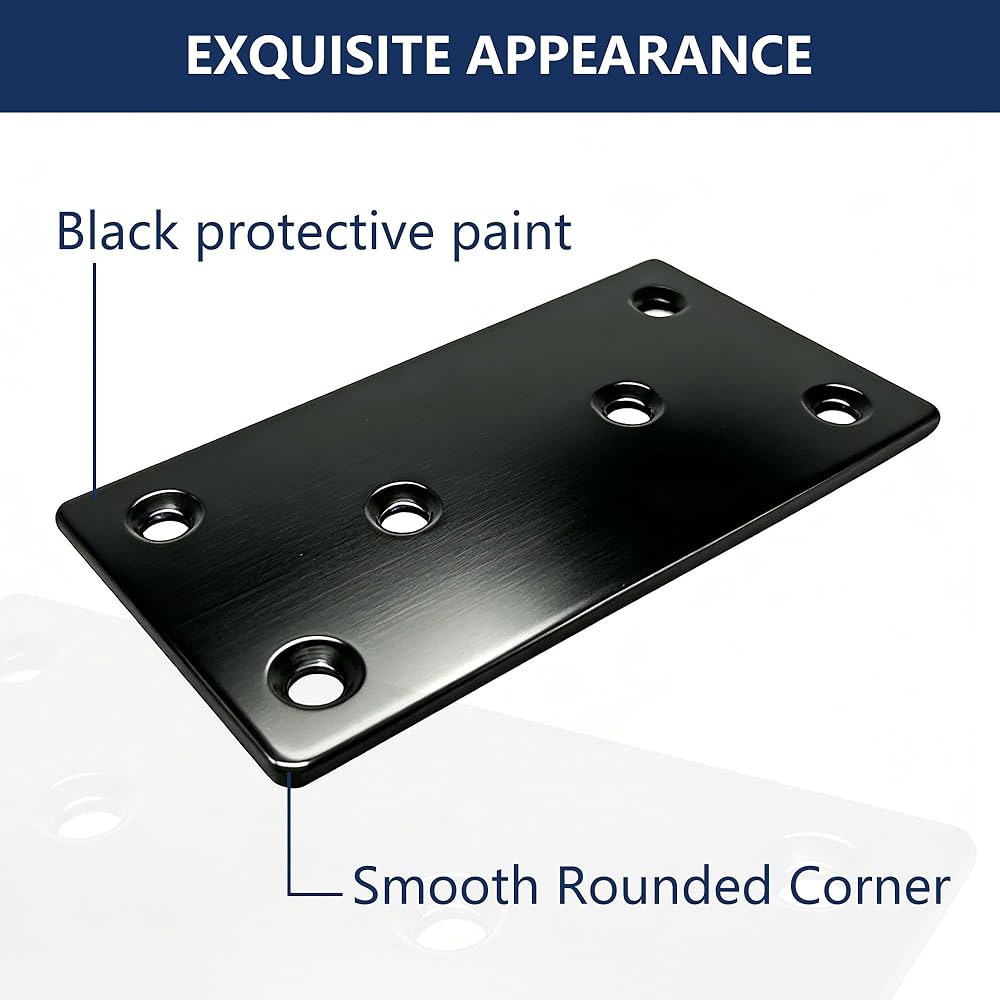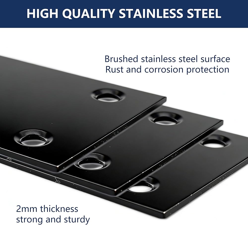 Each plate is constructed from high-quality stainless steel and finished with a sleek, black powder coating. This dual-layer protection not only offers a modern aesthetic but also provides exceptional resistance to rust, corrosion, and daily wear and tear. The 2mm thick metal ensures that these brackets won't bend or break under pressure, making them perfect for reinforcing everything from heavy bookshelves to outdoor fences.