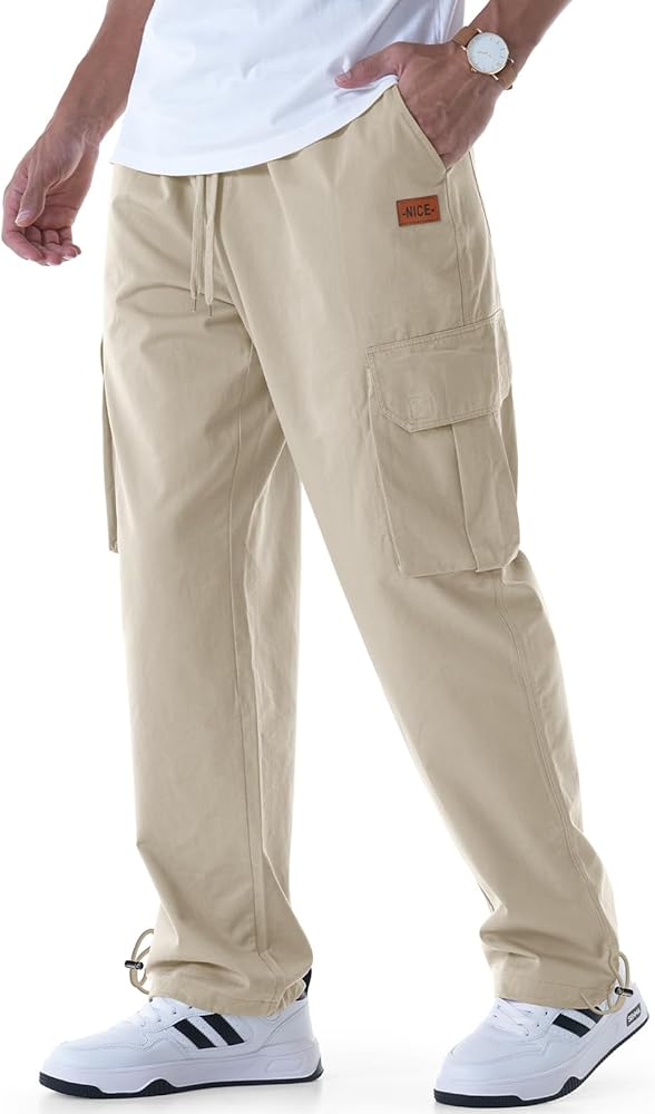 • 【نسيج فاخر】بنطلون كارجو رجالي مصنوع من القطن بنسبة 100%، مسامي، خفيف الوزن، متين، لن يتمزق أثناء ممارسة التمارين العنيفة. السراويل الفضفاضة تجعلها مريحة للتمرين والارتداء المنزلي.