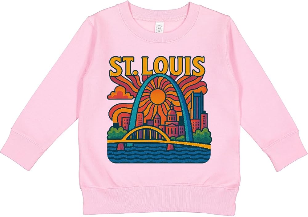 Celebrate the vibrant spirit of St. Louis with this retro-style design featuring the iconic Gateway Arch and cityscape. Perfect for lovers of urban landscapes and those with a special connection to this historic city. Add a splash of color with this standout Toddler Sweatshirt.