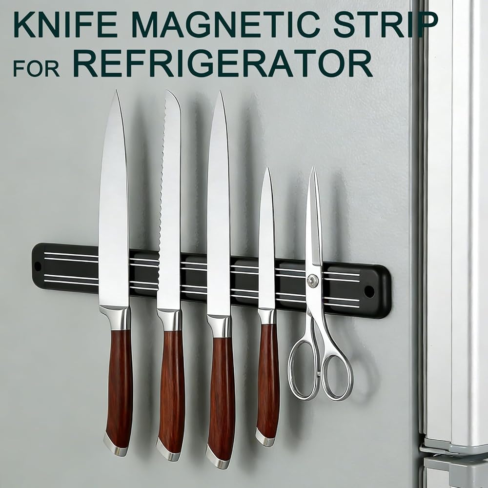 حامل سكاكين مغناطيسي رائع للثلاجة للمساعدة في تنظيم المطبخ وتخزينه. يرجى التذكير: شريط السكين المغناطيسي الخاص بنا غير متوافق مع الفولاذ المقاوم للصدأ غير الأوستنيتي أو المواد الأخرى غير المغناطيسية. يرجى اختبار سكاكينك بالمغناطيس قبل الشراء.