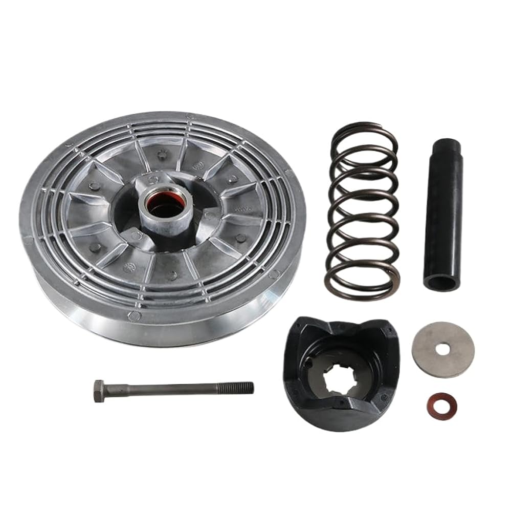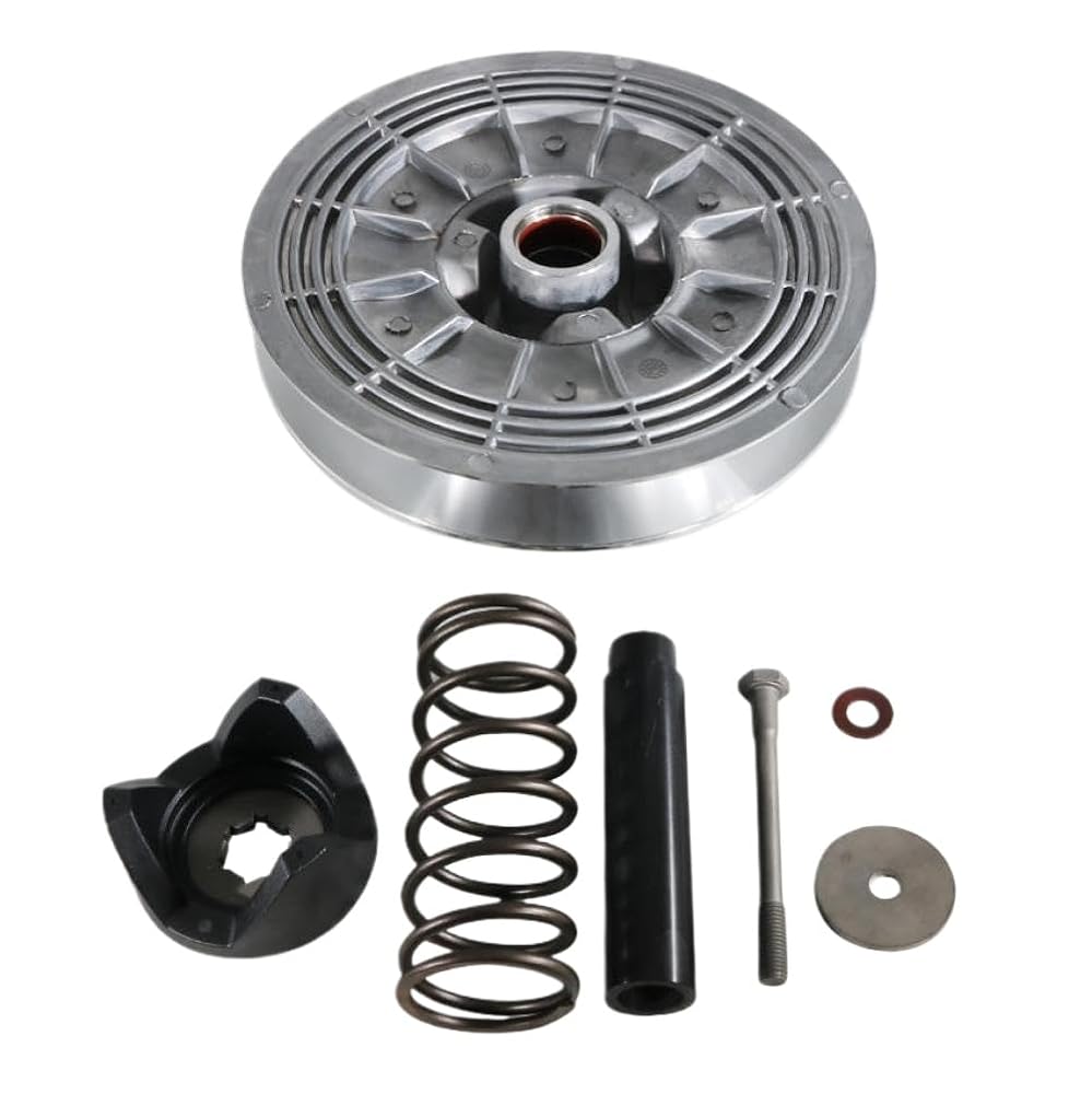 This aftermarket starter clutch assembly is compatible with the following models: 570 EFI (2016–2023), 570 EFI PRO (2016–2017), 570 EFI T3 (2018), 570 EFI PRO T3 (2019), 570 EFI DPS PRO T3 (2019), 570 EFI STD DPS (2020–2021), 570 EFI XMR (2020–2023), 570 EFI XU (2021–2023), 570 EFI DPS (2022–2023), 570 EFI STD (2022), 570 EFI STD 4X4 (2023), MAX 570 EFI (2018–2020), MAX 570 EFI T3 (2018), MAX 570 EFI PRO T3 (2018–2019), MAX 570 EFI DPS T3 (2019), MAX 570 EFI DPS CE (2021–2022), MAX 570 EFI DPS (2022–2023), MAX 570 EFI STD DPS (2021), MAX 570 EFI STD (2022–2023), L 570 EFI (2016–2017), L 570 EFI PRO (2016–2017), L 570 EFI XMR (2016–2017), T 570 EFI PRO (2020), T 570 EFI STD DPS PRO (2020), T 570 EFI STD DPS XU (2021), T 570 EFI XU (2021/2023), T 570 EFI DPS (2022–2023), T 570 EFI STD (2022–2023).Note: Not compatible with 1000R or 650 EFI models.Includes components corresponding to OEM reference numbers: 420280474, 420280475, 420280700, 420280701 (Driven Pulley Cam), 420220914 (Driven Pulley Shaft), 420238176 (Compression Spring), 420280188 (Inner Half Pulley), 420280178 (Outer Half Pulley Ass'y).Condition: Aftermarket replacement Material: Aluminum Color: As shown in product images Package contents: Starter clutch assembly as depicted Function: This clutch assembly assists in engine startup by transferring rotational force from the starter motor to the crankshaft.It disengages automatically once the engine is running to prevent overspeeding of the starter motor.
