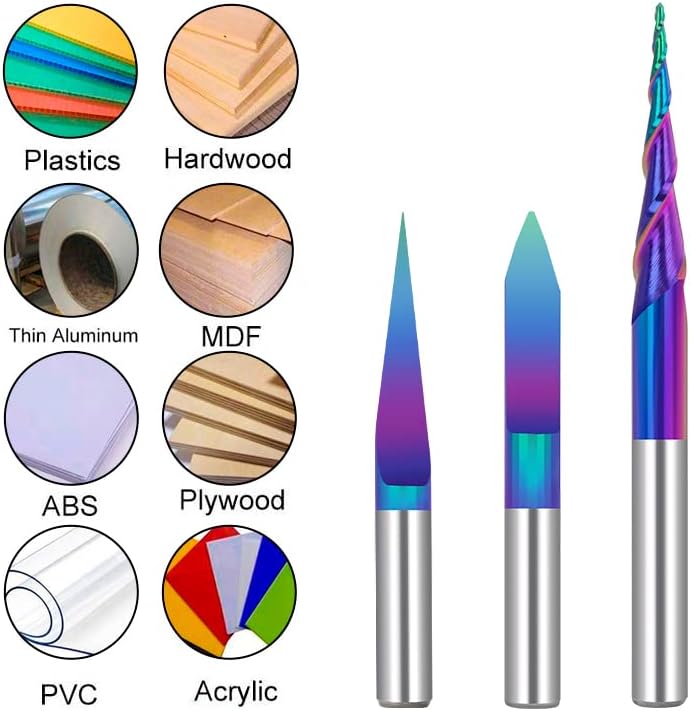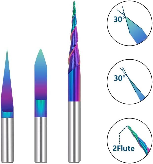 3 قطع نانو الأزرق معطف نهاية مطحنة CNC راوتر بت، CNC النقش بت R0.25 2 الناي الكرة الأنف