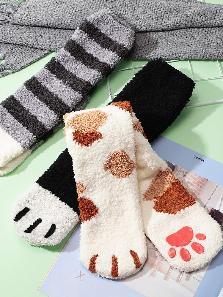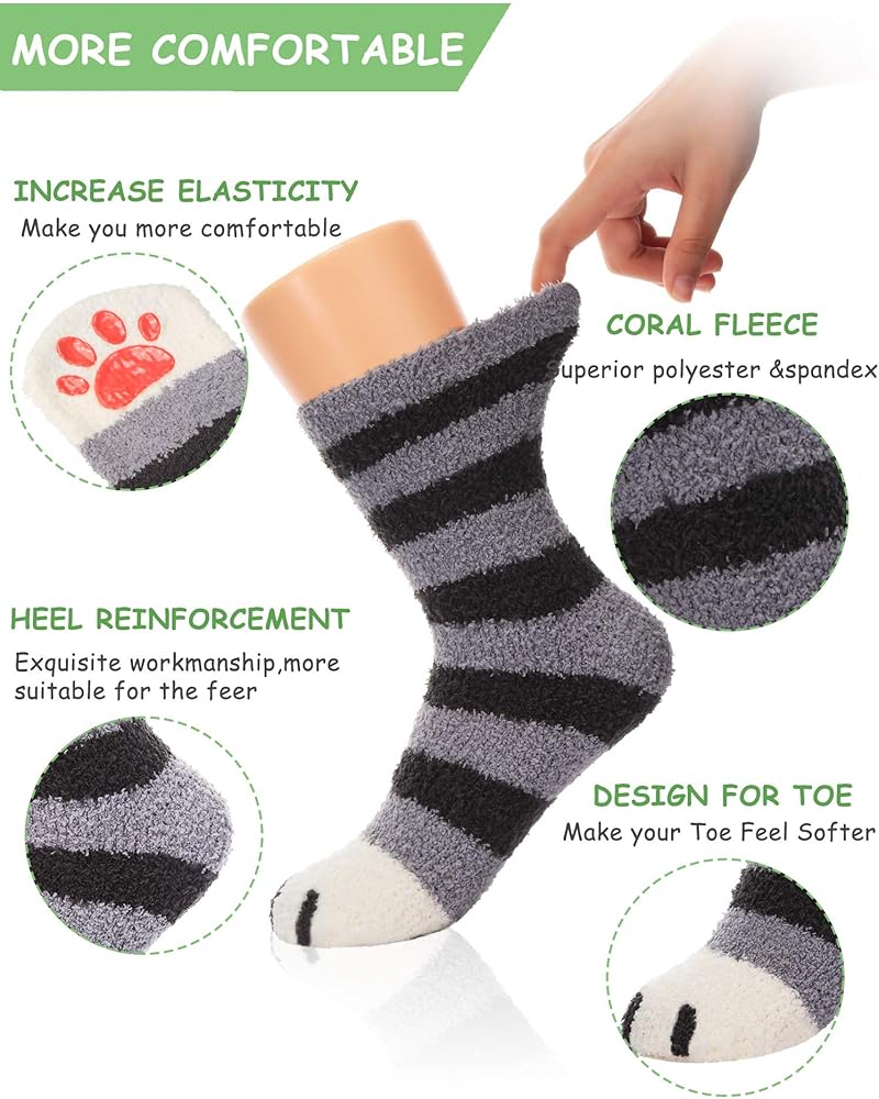 تصميم جميل للقطط: تتميز الجوارب المنفوشة بمخالب القطط بتصميم جميل المظهر، مما يجعلك تبدو جذابًا ويمكن لهذه الجوارب أن تضيء الشتاء، وتجعل حياتك أكثر إثارة للاهتمام.
