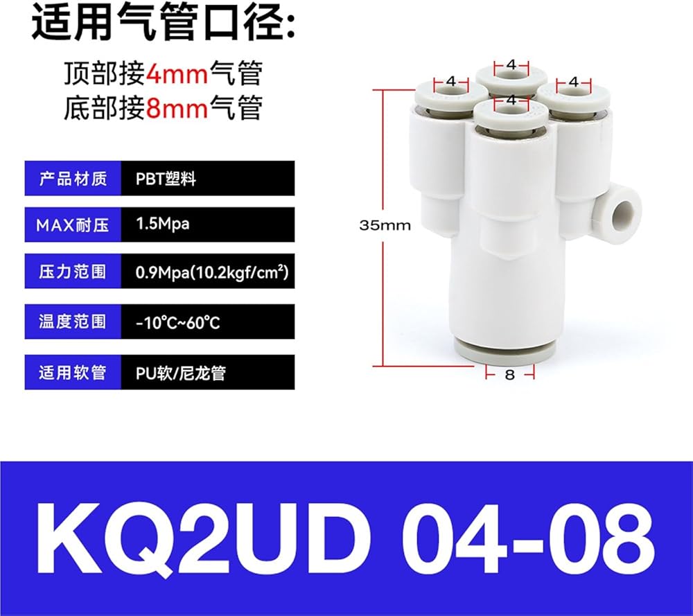 موصل هوائي بخمسة اتجاهات على شكل Y KQ2UD04-06 القصبة الهوائية سريع بقطر متغير PRG08-10 رباعي الاتجاهات 1 قطعة(五通KQ2UD04-08(PRG8-4))