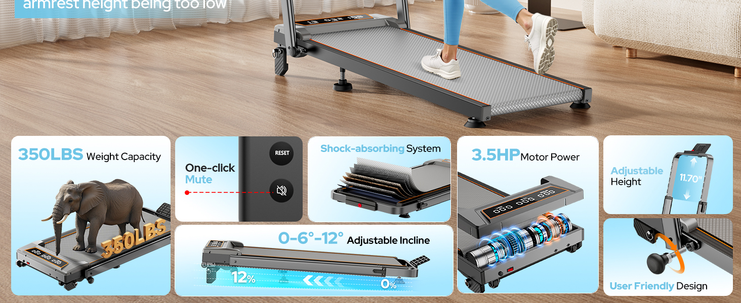 🏃 【ميل بنسبة 12% - وسادة مشي 4 في 1 لحرق الدهون بكفاءة】تجمع وسادة المشي هذه ذات الميل بين المشي والركض والجري الخفيف وأوضاع التدريب المائلة لتلبية احتياجات اللياقة البدنية المتنوعة. تتميز بـ 3 مستويات ميل قابلة للتعديل (0%/6%/12%)، نطاق سرعة 0.6-6.0 ميل في الساعة، وسعة وزن 350 رطل، فهي تعزز حرق السعرات الحرارية بنسبة تصل إلى 50% مقارنة بمنصات المشي القياسية. مثالي للشقق الصغيرة والمكاتب المنزلية والتدريب الداخلي في أيام الطقس الممطرة أو الثلجية أو السيئة.