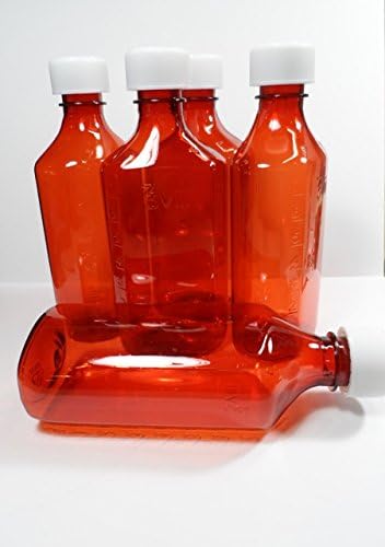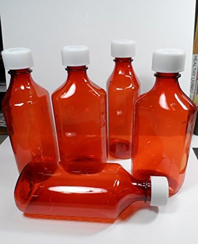Package of 6 beautiful clear amber-colored large 8 ounce plastic BPA-free medicine bottles complete with press-down child-resistant caps. Thousands of uses, from storage to wonderful travel containers strong and with secure child-resistant caps your liquids won't open and spill. These are pharmaceutical grade bottles and the same ones we sell direct to pharmacies, hospitals, physicians, labs, vets, etc.