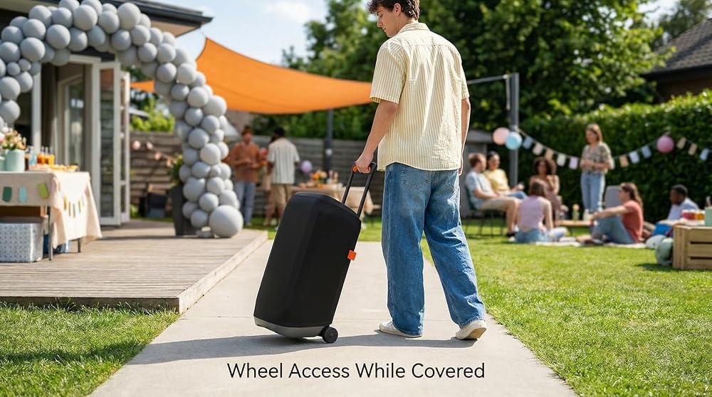 تصميم رائع: تحتوي حافظة الغبار الخاصة بـ JBL Partybox 310/Stage 320 على مقبض مكبر صوت دقيق وفتحات للعجلات، مما يسمح لك بتحريك مكبر الصوت بسهولة عند تركيب غطاء الغبار. ويساعد ذلك على تقليل الصدمات والخدوش التي تتعرض لها السماعة أثناء الحركة إلى حد ما.