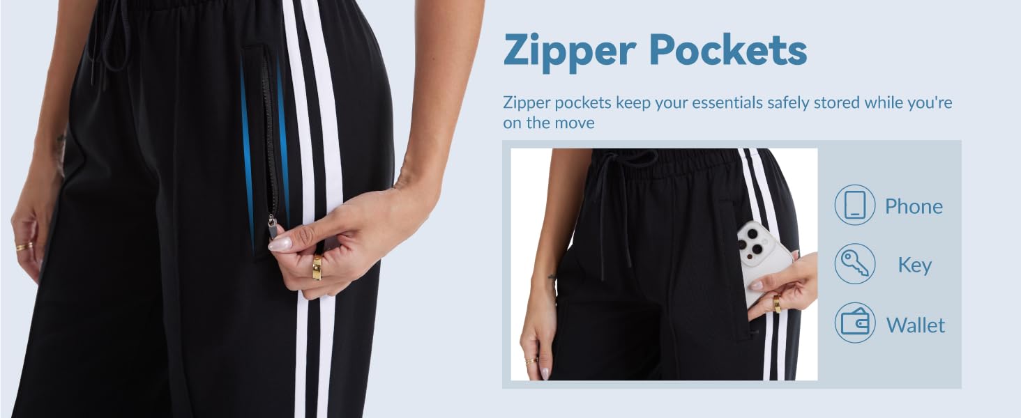 تخزين جيب بسحاب: تم تصميم هذه السراويل الرياضية بجيبين أماميين بسحّاب، مما يحافظ على هاتفك ومفاتيحك والضروريات الصغيرة آمنة، مما يجعلها سراويل رياضية عملية للتمرينات والتنقل والأنشطة أثناء التنقل.